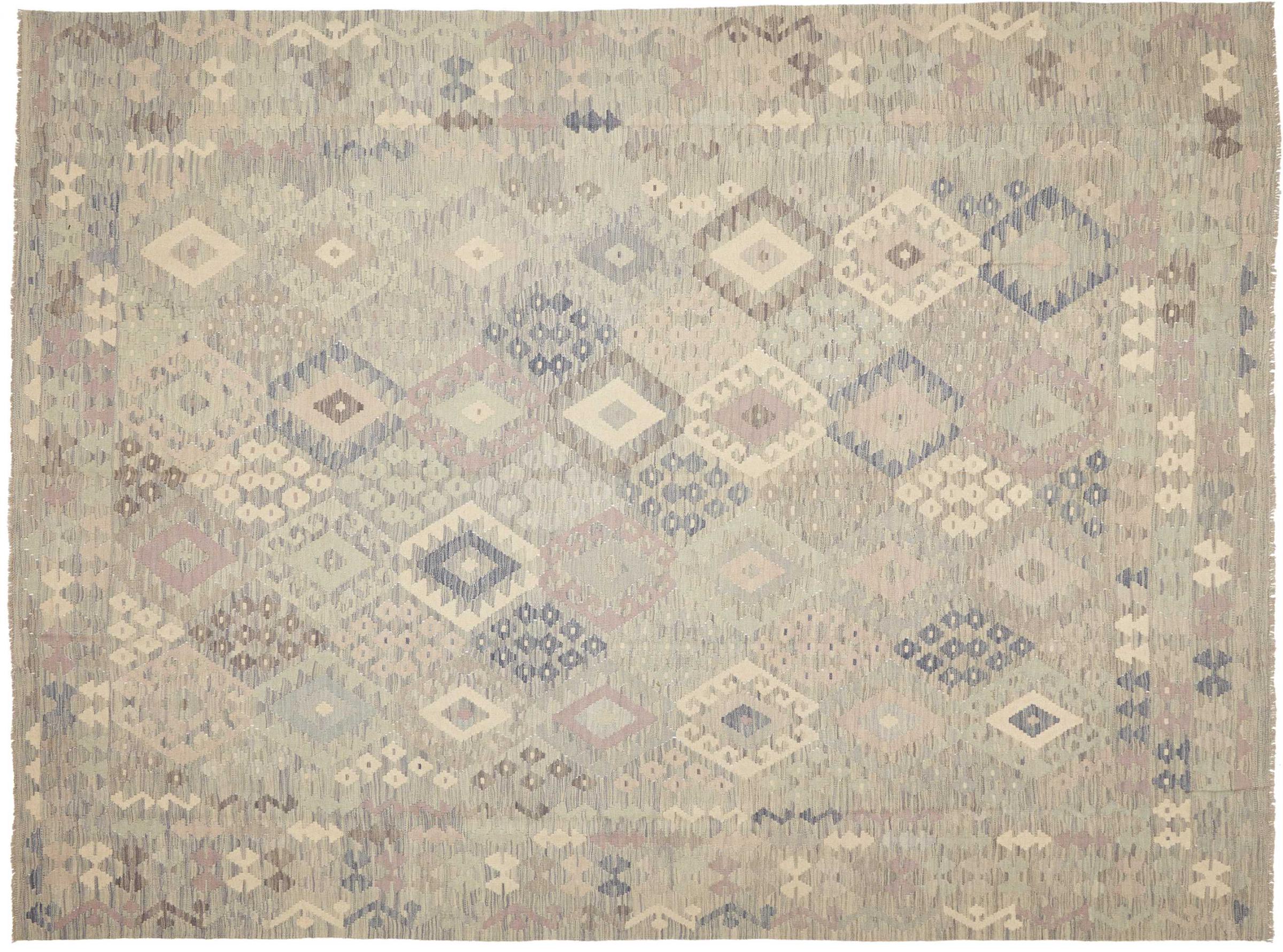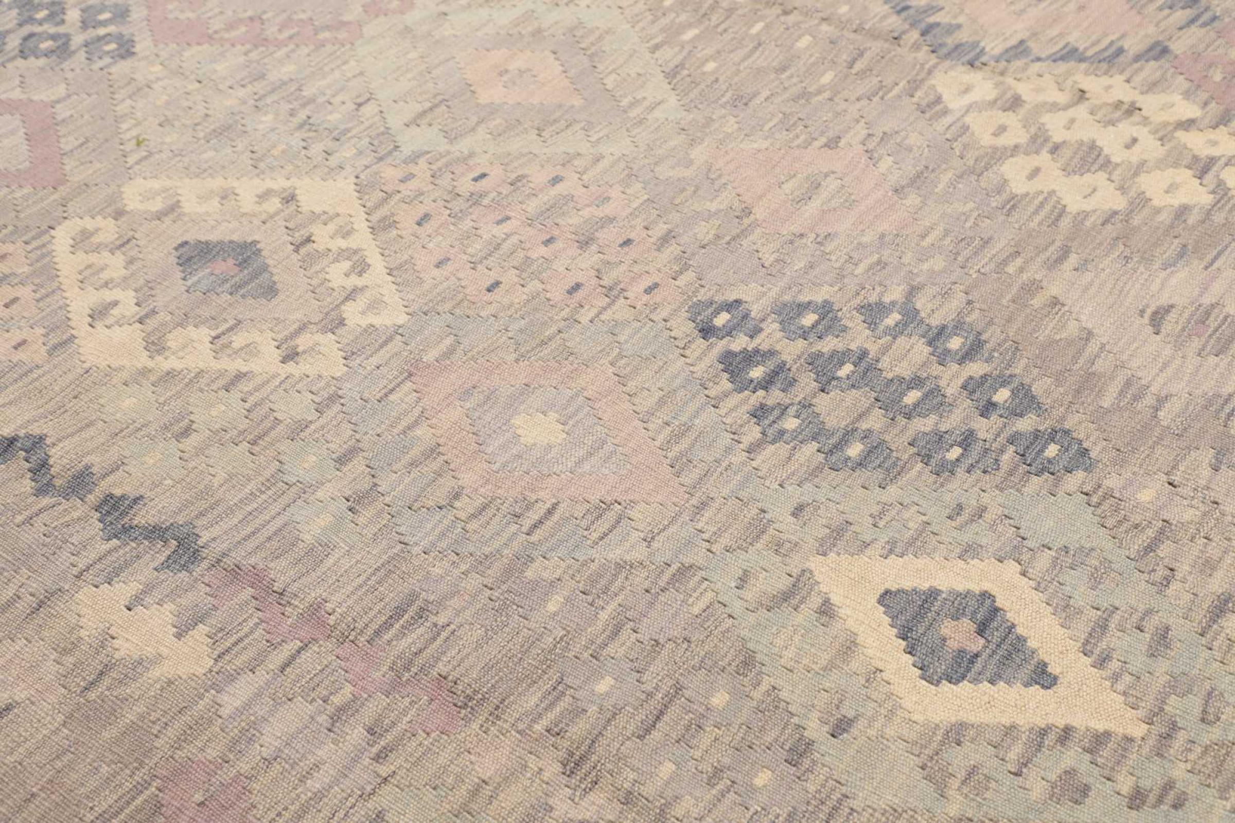 Estas alfombras kilim muestran una diferencia decisiva con las alfombras anudadas a mano - son tejidas a mano. Por lo tanto, no tienen un montón alto de lana y son a menudo más planos y más ásperos que las alfombras de lana anudada. Su fabricación es menos elaborada y por eso suelen ser mucho más baratas. Como ventaja, las alfombras de kilim son también mucho más ligeras y pueden ser colocadas por delante y por detrás. Los kilims tejidos a mano provienen originalmente de la antigua Persia y ahora también se fabrican a menudo en el Afganistán. Tienen patrones bastante simples y directos, que se deben a su técnica de tejido.