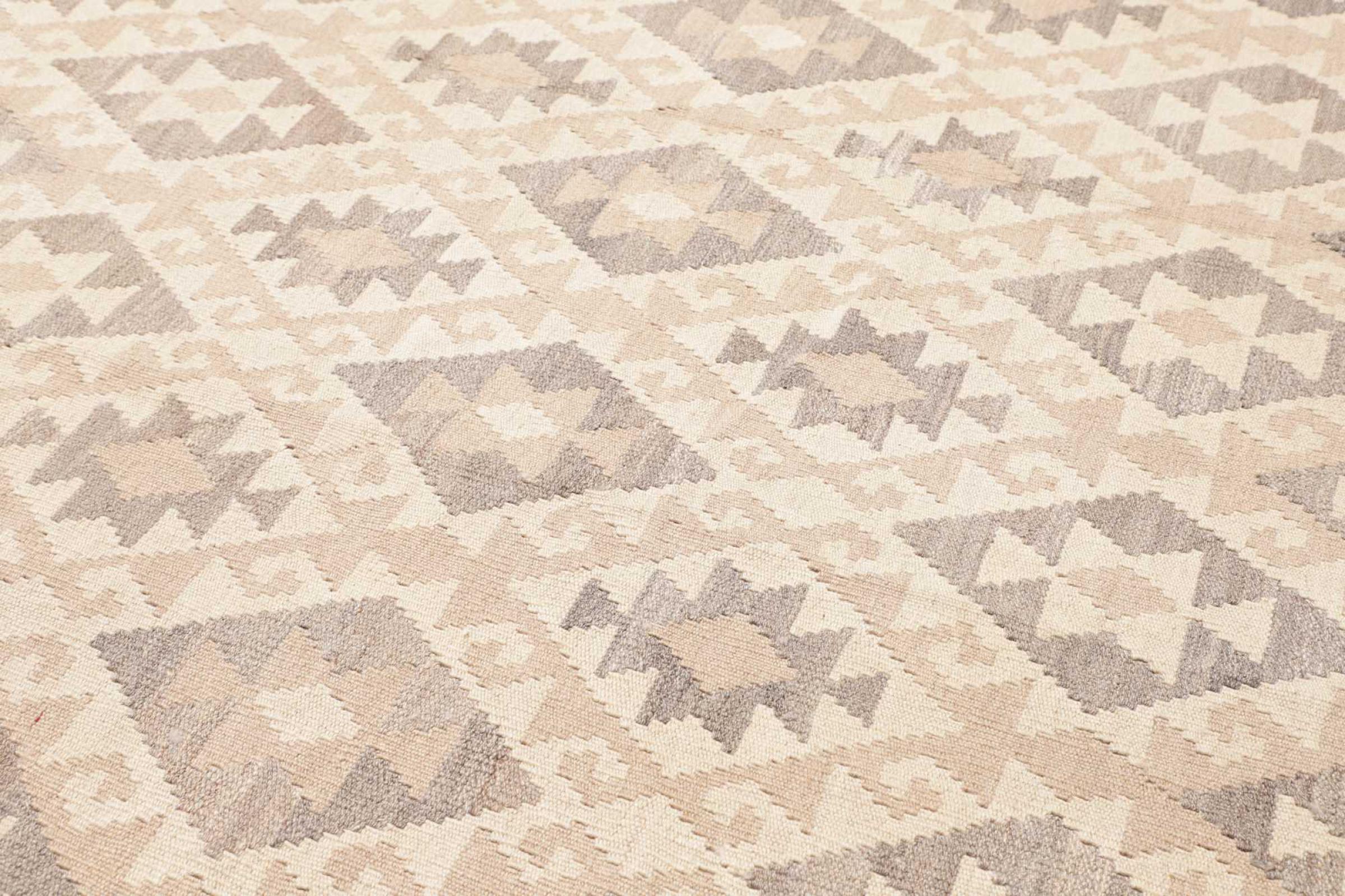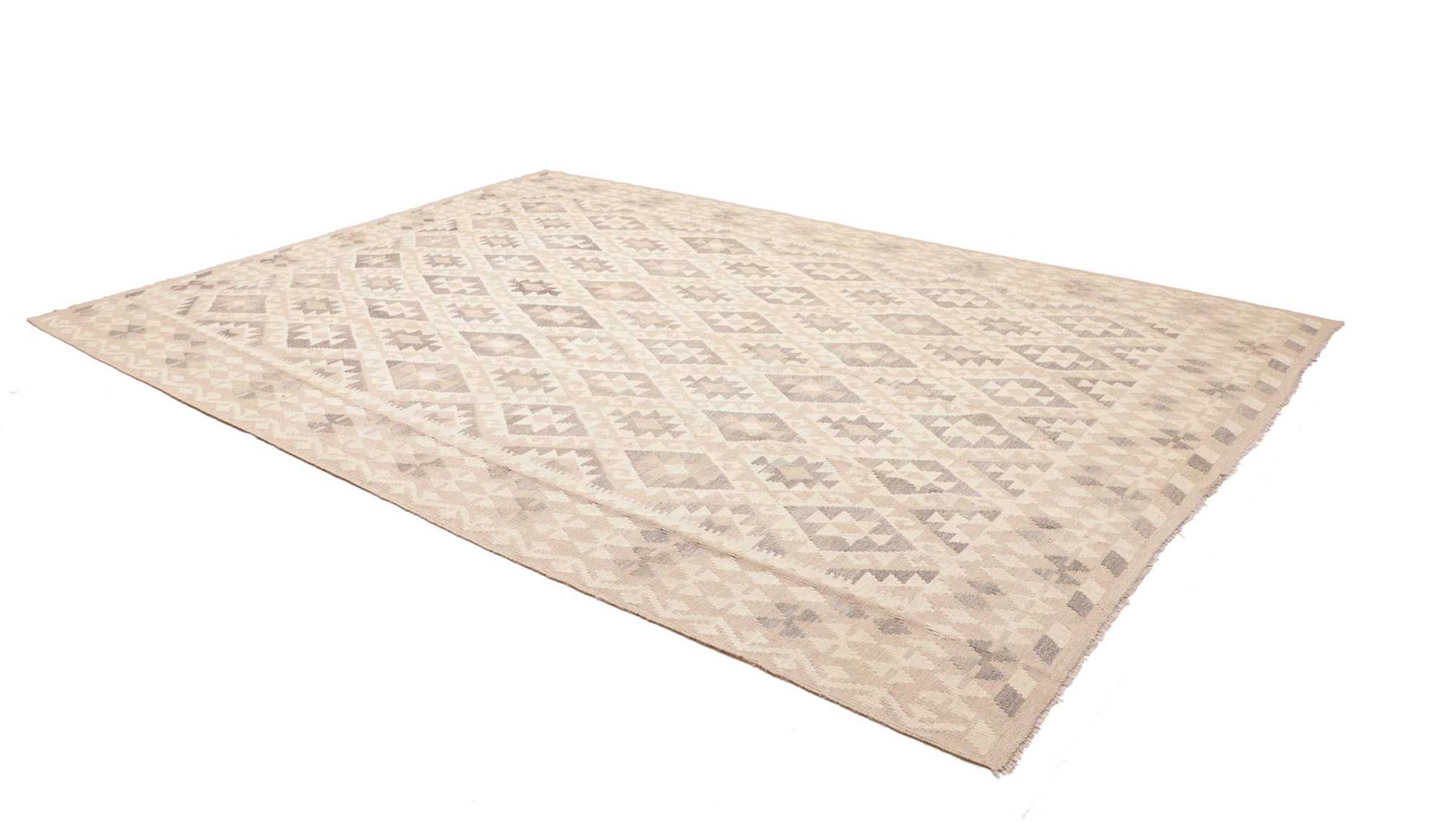 Estas alfombras kilim muestran una diferencia decisiva con las alfombras anudadas a mano - son tejidas a mano. Por lo tanto, no tienen un montón alto de lana y son a menudo más planos y más ásperos que las alfombras de lana anudada. Su fabricación es menos elaborada y por eso suelen ser mucho más baratas. Como ventaja, las alfombras de kilim son también mucho más ligeras y pueden ser colocadas por delante y por detrás. Los kilims tejidos a mano provienen originalmente de la antigua Persia y ahora también se fabrican a menudo en el Afganistán. Tienen patrones bastante simples y directos, que se deben a su técnica de tejido.