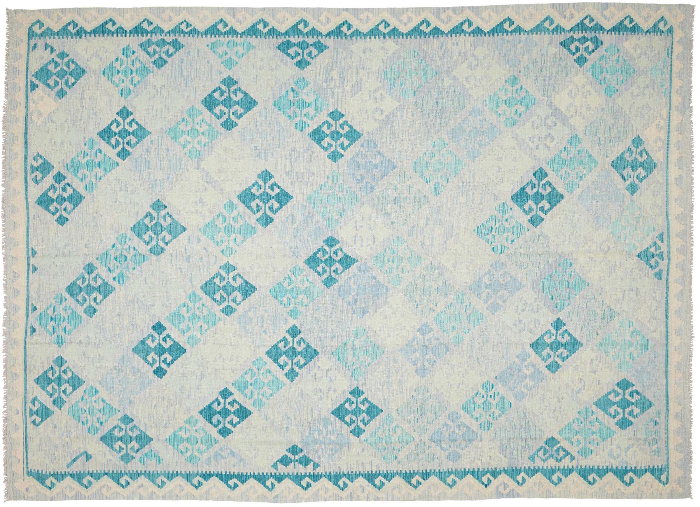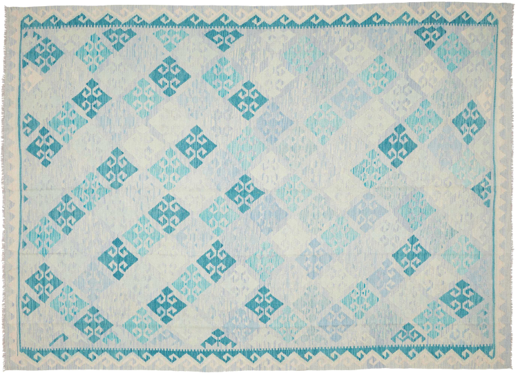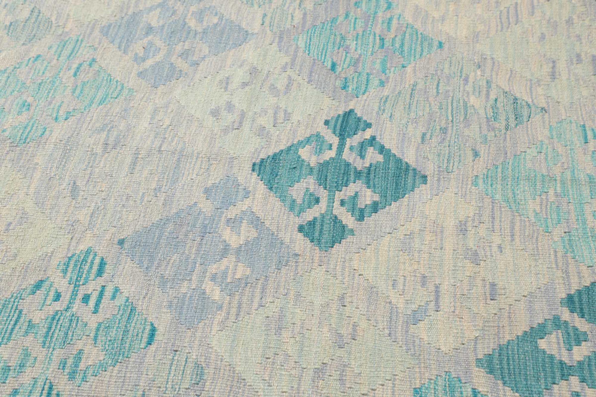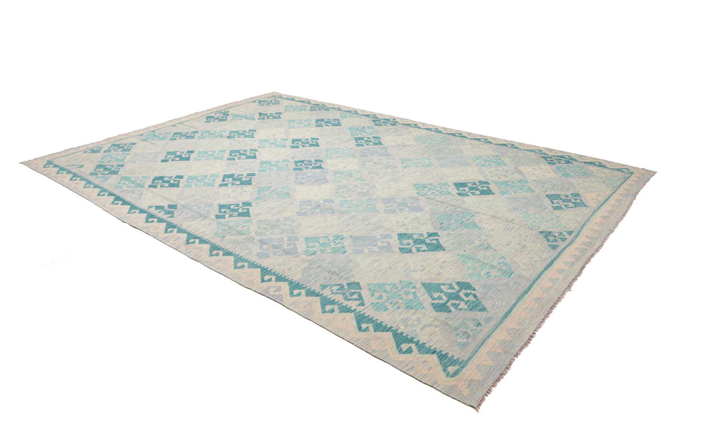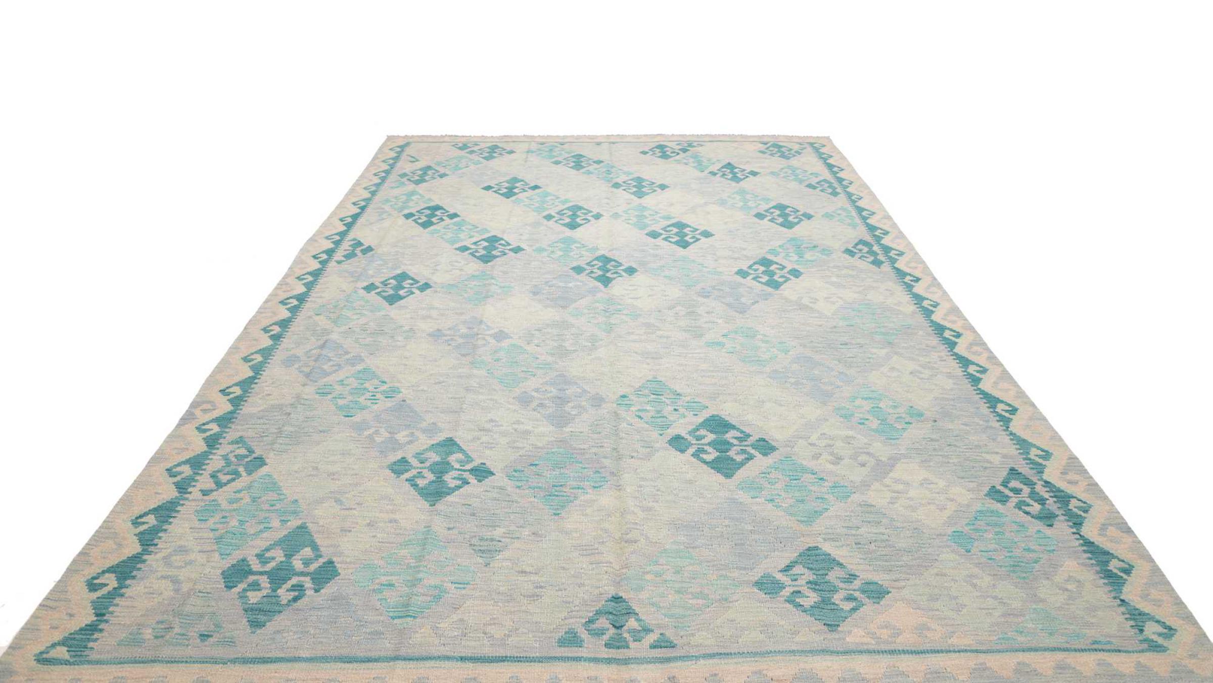 Estas alfombras kilim muestran una diferencia decisiva con las alfombras anudadas a mano - son tejidas a mano. Por lo tanto, no tienen un montón alto de lana y son a menudo más planos y más ásperos que las alfombras de lana anudada. Su fabricación es menos elaborada y por eso suelen ser mucho más baratas. Como ventaja, las alfombras de kilim son también mucho más ligeras y pueden ser colocadas por delante y por detrás. Los kilims tejidos a mano provienen originalmente de la antigua Persia y ahora también se fabrican a menudo en el Afganistán. Tienen patrones bastante simples y directos, que se deben a su técnica de tejido.