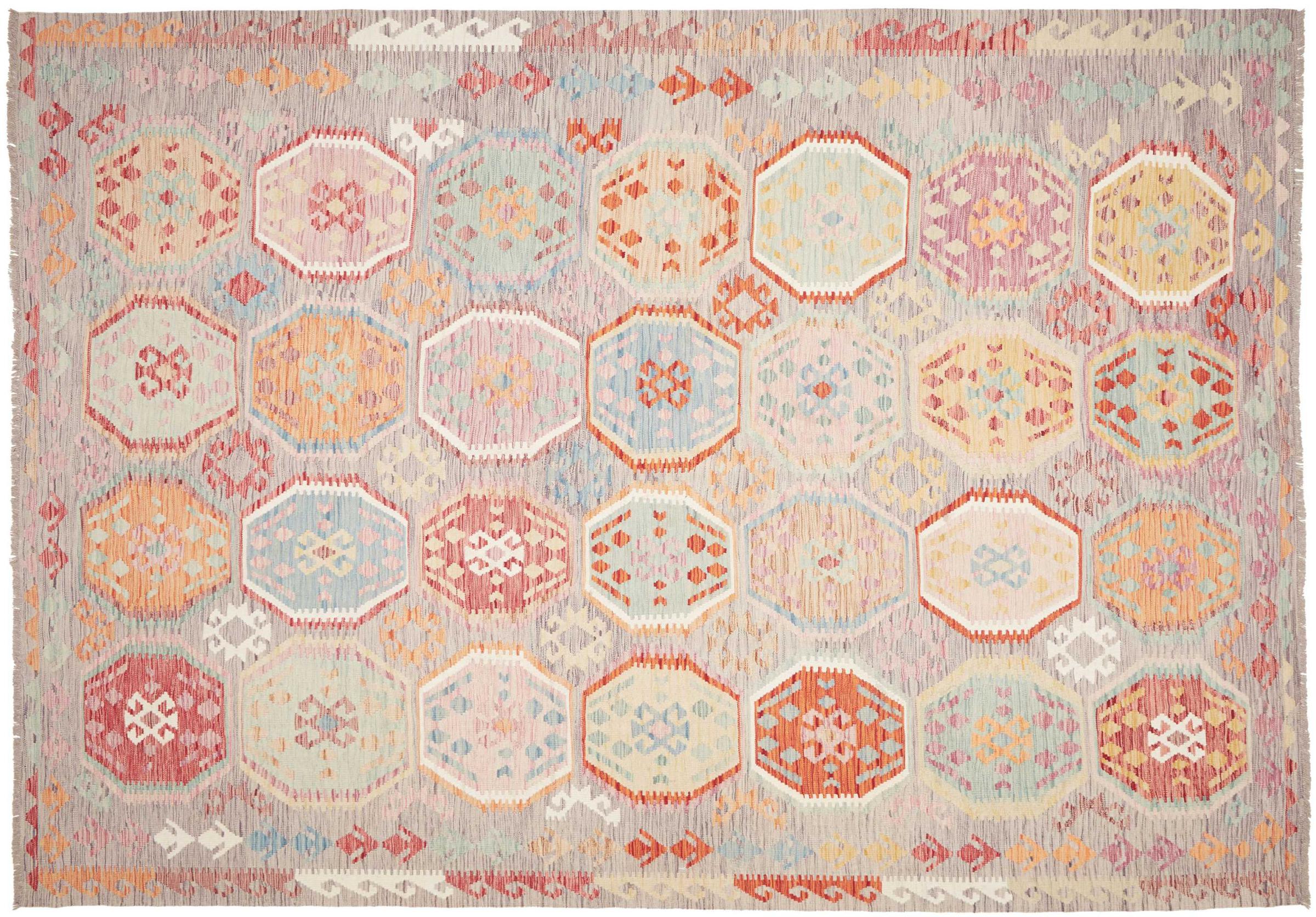 Este kilim afgano tejido a mano es precioso gracias a sus colores multifacéticos y su dibujo típico. Se tejió a mano en Afganistán con lana de oveja 100%. Esto lo hace sin duda más robusto y duradero que las alfombras hechas a máquina. Además, este kilim tiene carácter propio. Una pieza única para usted y su hogar que no volverá a encontrar exactamente igual.
