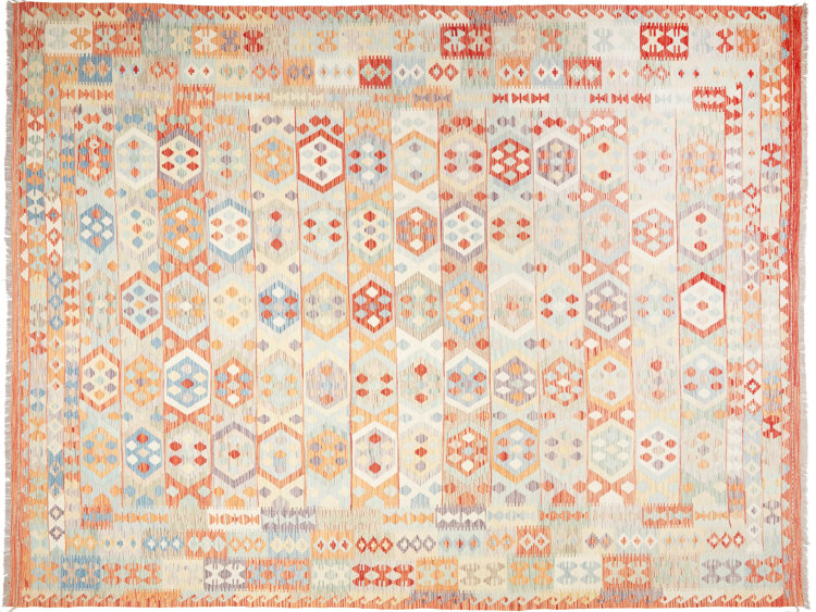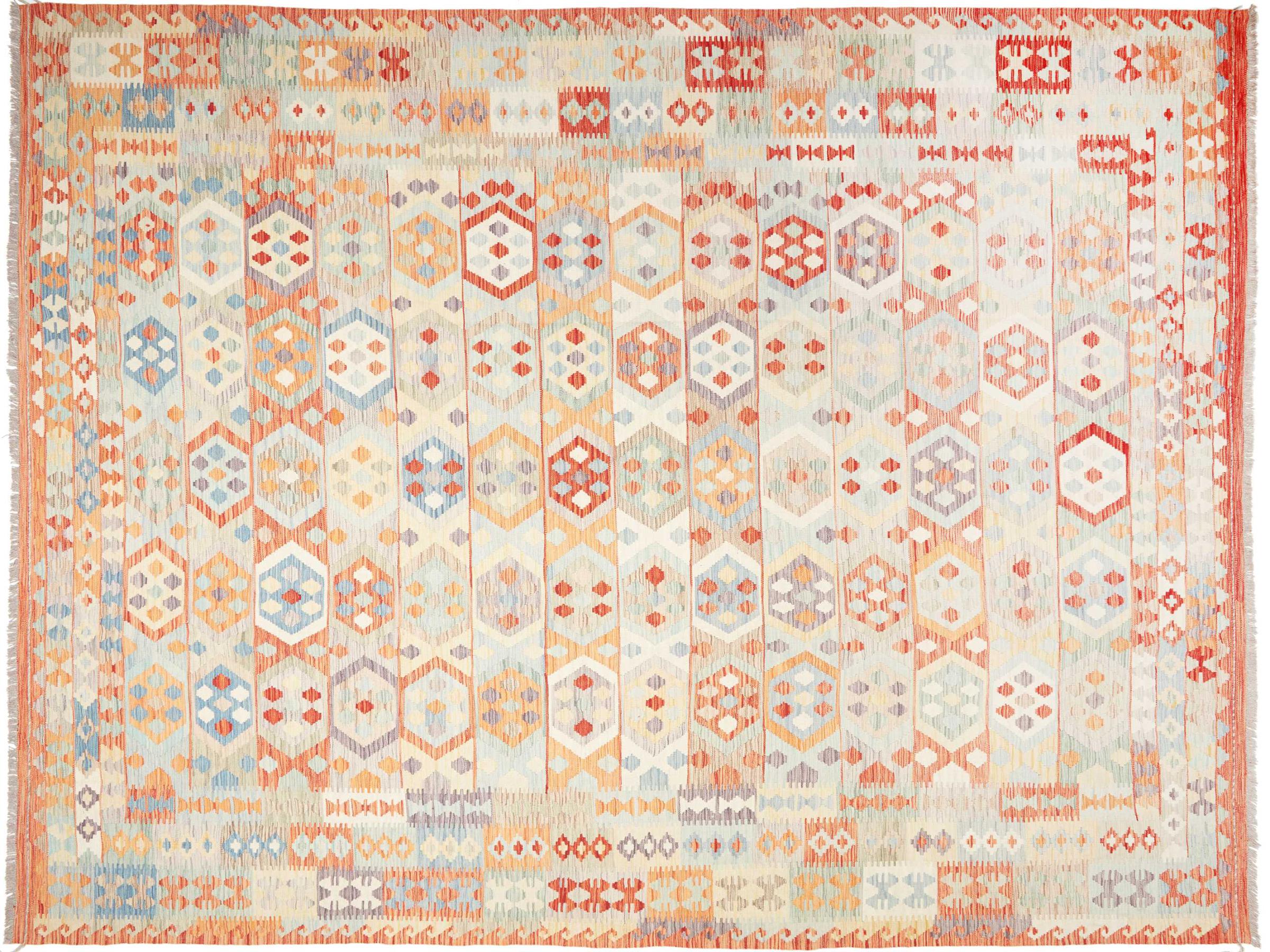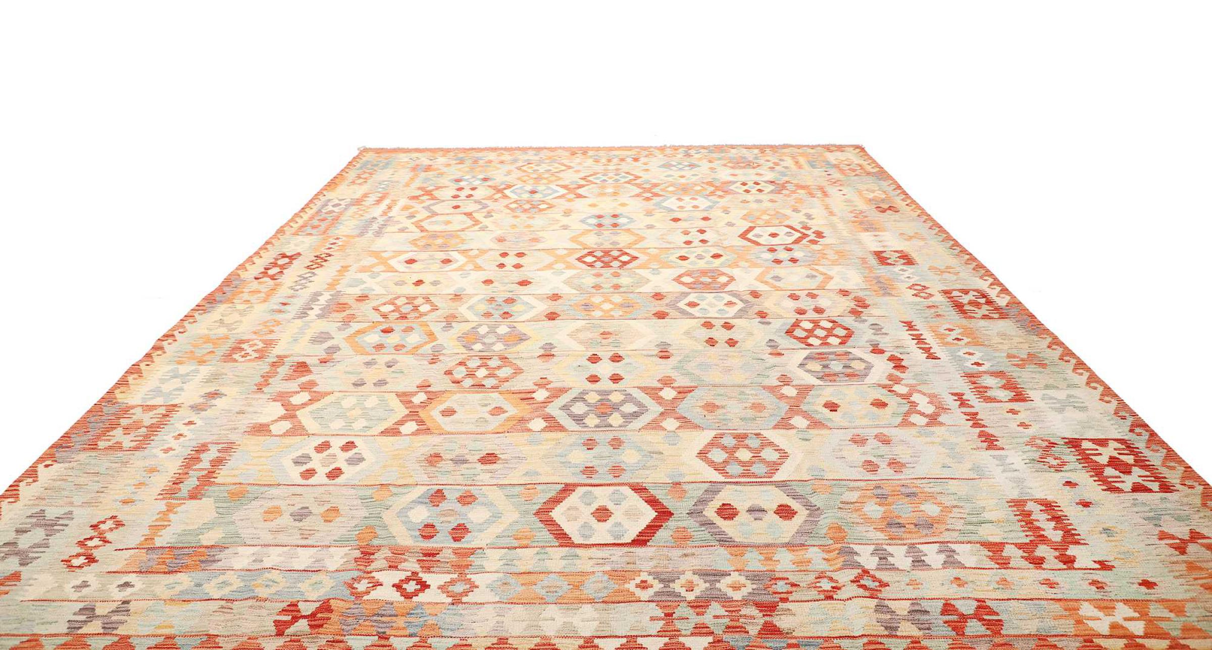 Estas alfombras kilim muestran una diferencia decisiva con las alfombras anudadas a mano - son tejidas a mano. Por lo tanto, no tienen un montón alto de lana y son a menudo más planos y más ásperos que las alfombras de lana anudada. Su fabricación es menos elaborada y por eso suelen ser mucho más baratas. Como ventaja, las alfombras de kilim son también mucho más ligeras y pueden ser colocadas por delante y por detrás. Los kilims tejidos a mano provienen originalmente de la antigua Persia y ahora también se fabrican a menudo en el Afganistán. Tienen patrones bastante simples y directos, que se deben a su técnica de tejido.
