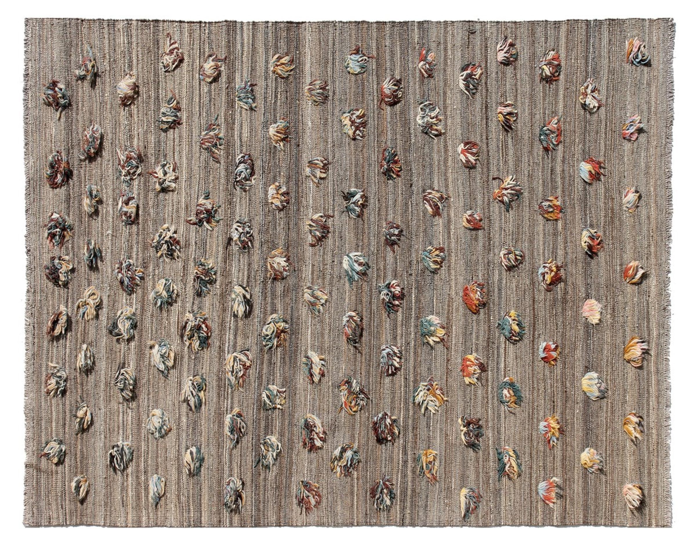 Esta alfombra fue hecha a mano en un telar como un tejido plano. Tejido plano es el término utilizado para describir las alfombras que no tienen pelo. Como el nombre promete, estas alfombras están tejidas y no anudadas. Esto resulta en una alfombra plana con una superficie estructurada. Los tejidos planos no son tan suaves y normalmente más delgados que las alfombras anudadas. Al mismo tiempo, su fabricación es mucho menos compleja y por lo general se pueden disponer por ambos lados (frontal y posterior). Sus patrones suelen ser geométricos, lo cual está determinado por el tejido.