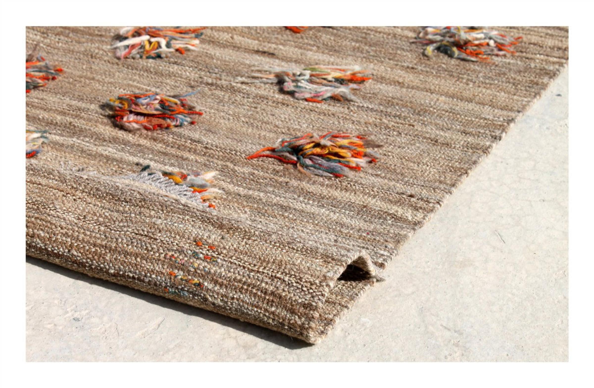 Esta alfombra fue hecha a mano en un telar como un tejido plano. Tejido plano es el término utilizado para describir las alfombras que no tienen pelo. Como el nombre promete, estas alfombras están tejidas y no anudadas. Esto resulta en una alfombra plana con una superficie estructurada. Los tejidos planos no son tan suaves y normalmente más delgados que las alfombras anudadas. Al mismo tiempo, su fabricación es mucho menos compleja y por lo general se pueden disponer por ambos lados (frontal y posterior). Sus patrones suelen ser geométricos, lo cual está determinado por el tejido.