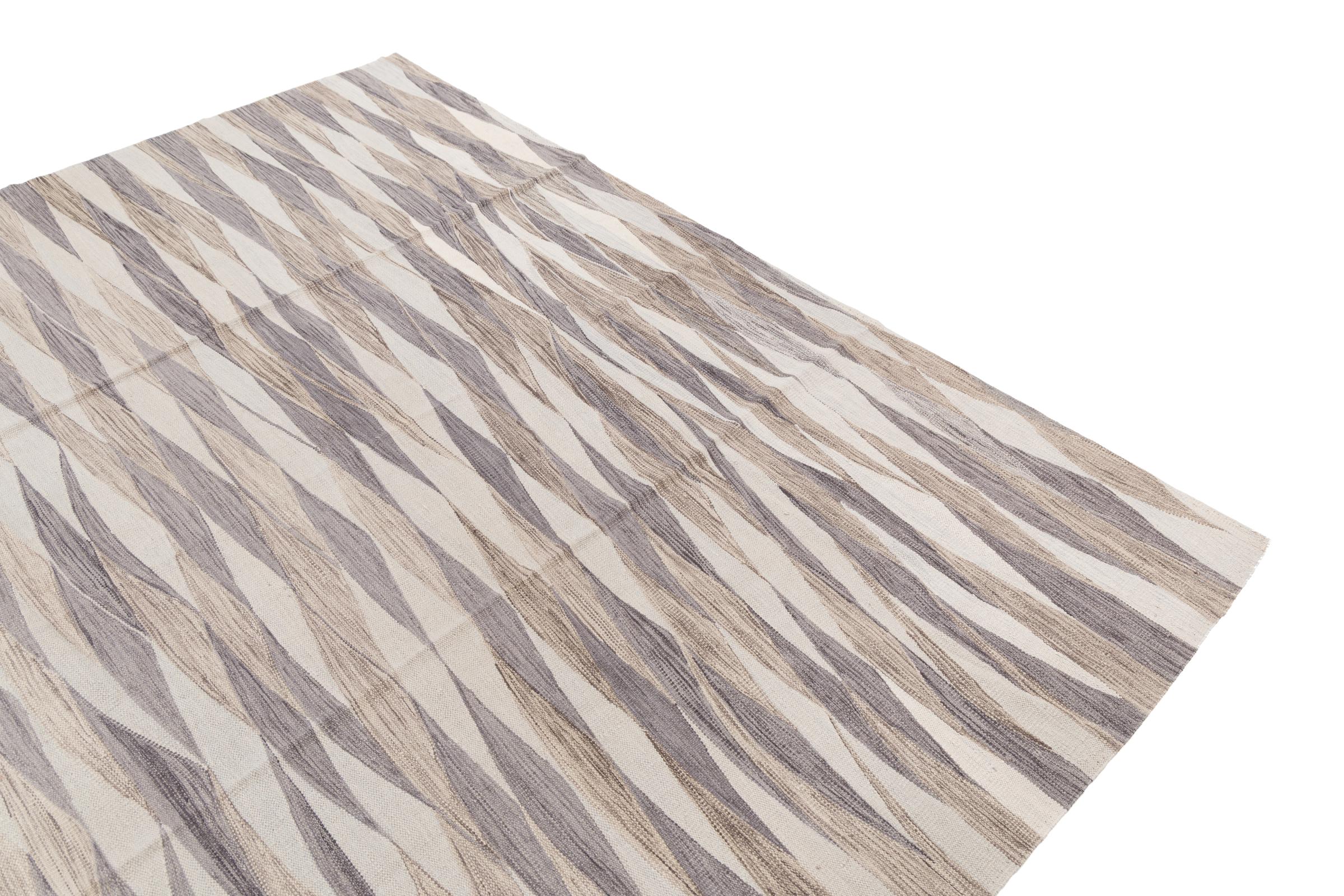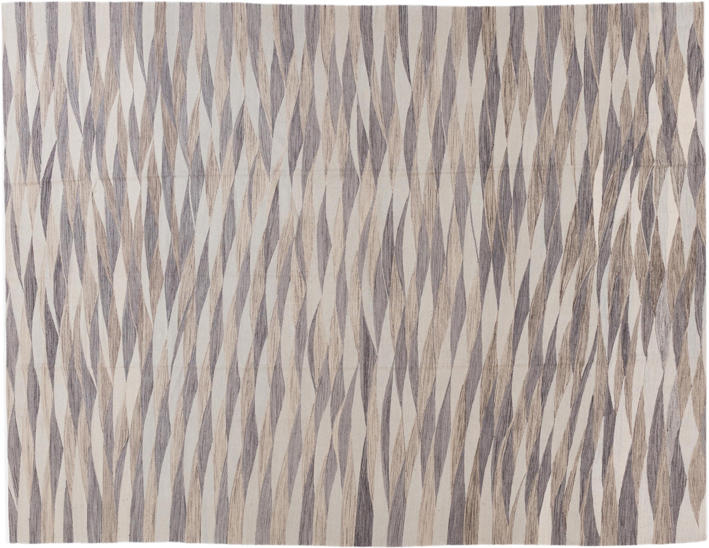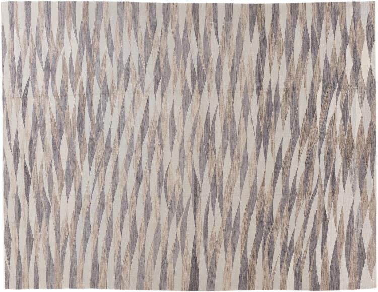 Esta alfombra fue hecha a mano en un telar como un tejido plano. Tejido plano es el término utilizado para describir las alfombras que no tienen pelo. Como el nombre promete, estas alfombras están tejidas y no anudadas. Esto resulta en una alfombra plana con una superficie estructurada. Los tejidos planos no son tan suaves y normalmente más delgados que las alfombras anudadas. Al mismo tiempo, su fabricación es mucho menos compleja y por lo general se pueden disponer por ambos lados (frontal y posterior). Sus patrones suelen ser geométricos, lo cual está determinado por el tejido.