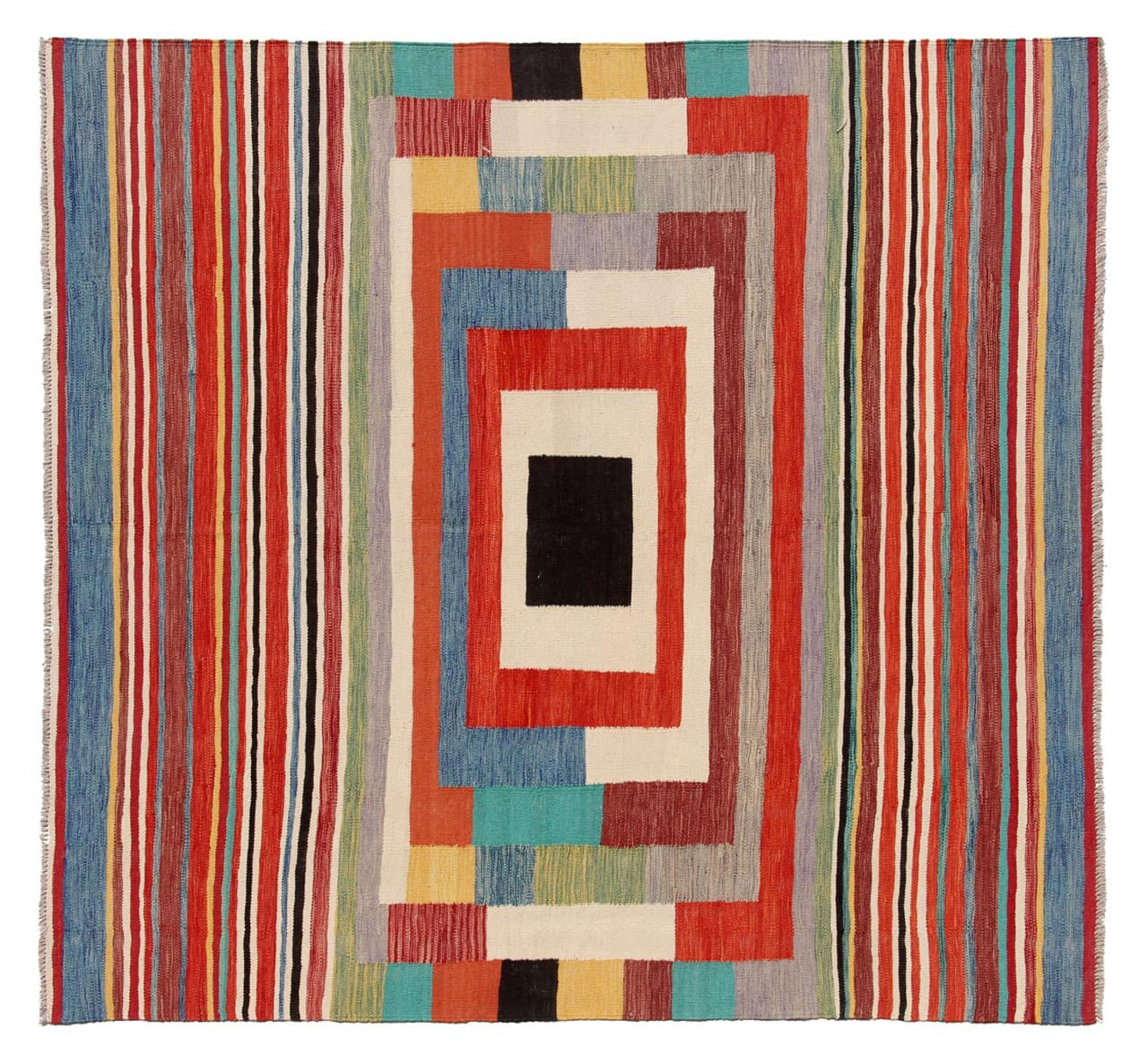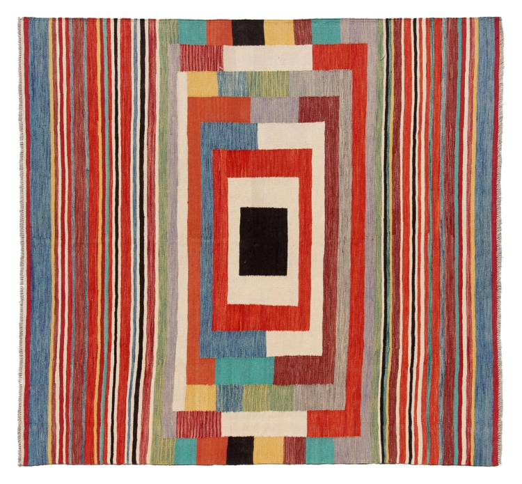 Alfombra número: 315132002651809 Tamaño: 200x199 cm Espesor: alrededor de 5 mm Elaboración: Tejido a mano Crespón: Lana hilada a mano Urdimbre: Lana de oveja Origen: Afganistán Edad: Nuevo Peso: alrededor de 8 kg También conocido como Kilim, Qilim, Chilim, Afgan, Afghán Cantidad en stock: Única - Solo 1 en stock