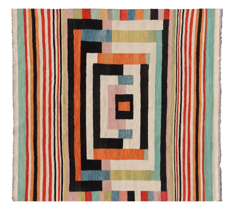 Alfombra número: 315404002143465 Tamaño: 205x201 cm Espesor: alrededor de 5 mm Elaboración: Tejido a mano Crespón: Lana hilada a mano Urdimbre: Lana de oveja Origen: Afganistán Edad: Nuevo Peso: alrededor de 8 kg También conocido como Kilim, Qilim, Chilim, Afgan, Afghán Cantidad en stock: Única - Solo 1 en stock