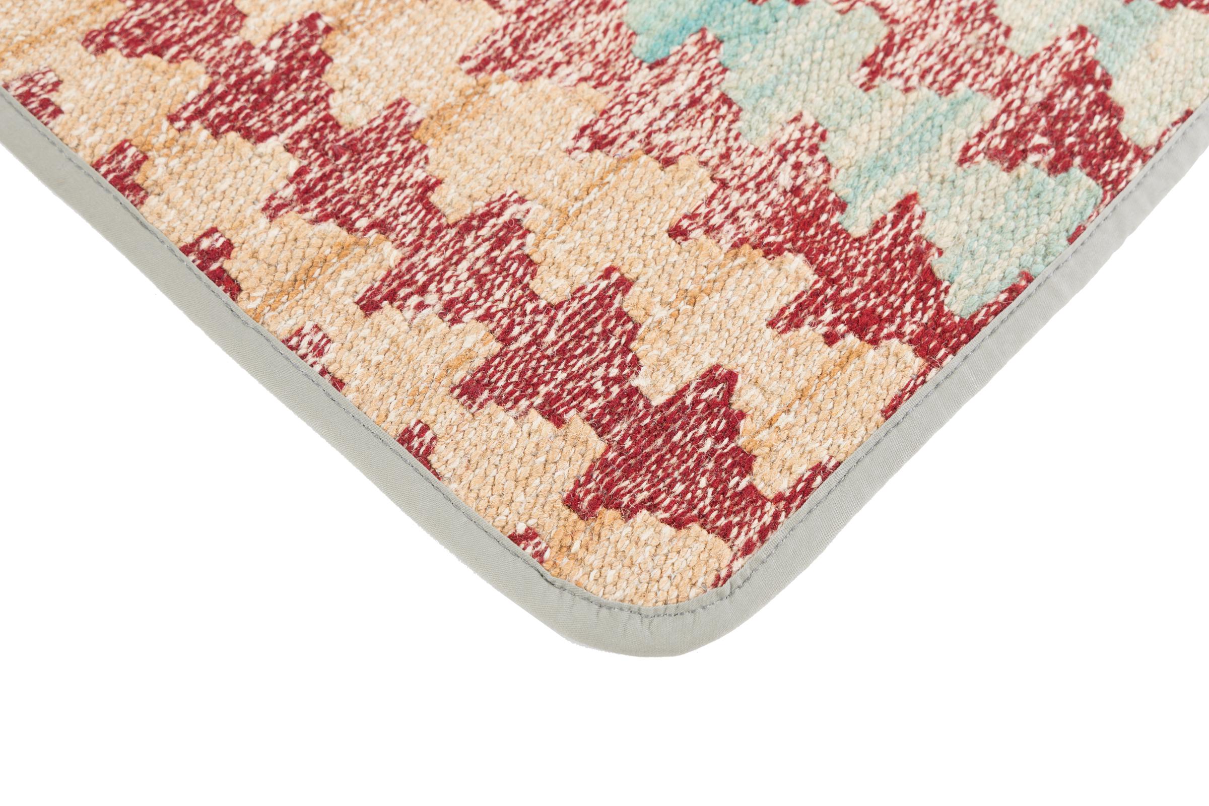 Estas alfombras kilim muestran una diferencia decisiva con las alfombras anudadas a mano - son tejidas a mano. Por lo tanto, no tienen un montón alto de lana y son a menudo más planos y más ásperos que las alfombras de lana anudada. Su fabricación es menos elaborada y por eso suelen ser mucho más baratas. Como ventaja, las alfombras de kilim son también mucho más ligeras y pueden ser colocadas por delante y por detrás. Los kilims tejidos a mano provienen originalmente de la antigua Persia y ahora también se fabrican a menudo en el Afganistán. Tienen patrones bastante simples y directos, que se deben a su técnica de tejido.
