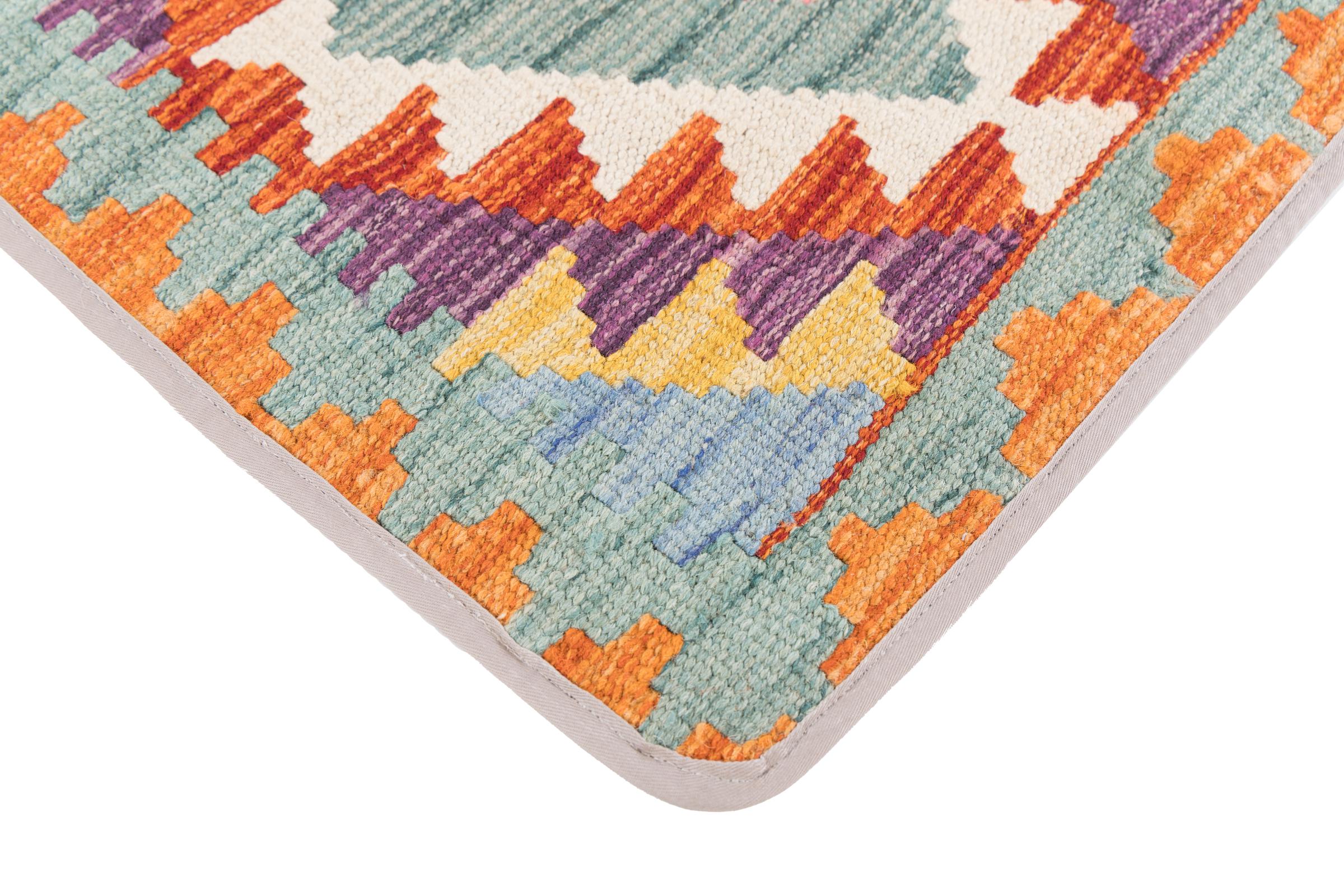 Estas alfombras kilim muestran una diferencia decisiva con las alfombras anudadas a mano - son tejidas a mano. Por lo tanto, no tienen un montón alto de lana y son a menudo más planos y más ásperos que las alfombras de lana anudada. Su fabricación es menos elaborada y por eso suelen ser mucho más baratas. Como ventaja, las alfombras de kilim son también mucho más ligeras y pueden ser colocadas por delante y por detrás. Los kilims tejidos a mano provienen originalmente de la antigua Persia y ahora también se fabrican a menudo en el Afganistán. Tienen patrones bastante simples y directos, que se deben a su técnica de tejido.