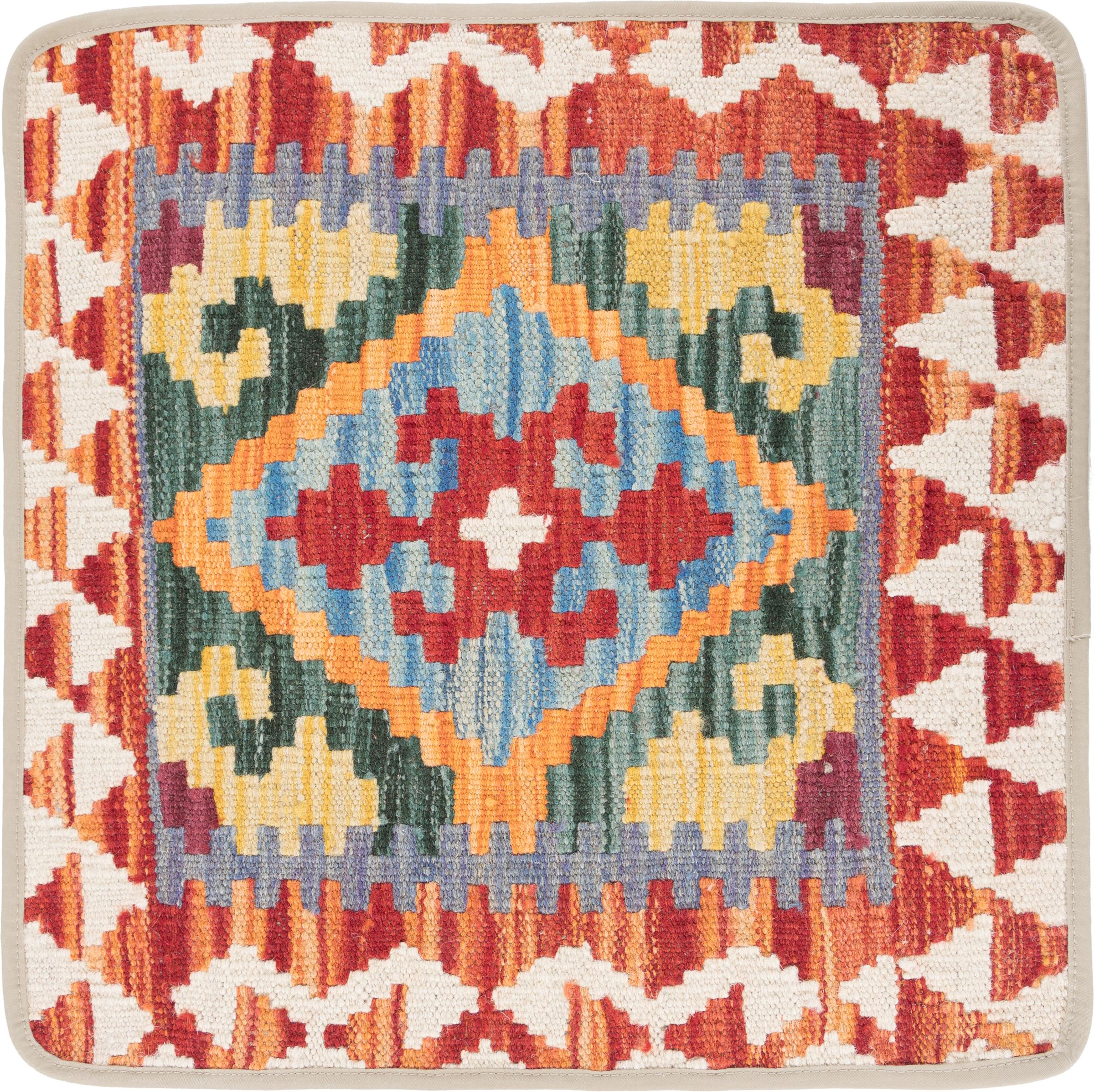 Estas alfombras kilim muestran una diferencia decisiva con las alfombras anudadas a mano - son tejidas a mano. Por lo tanto, no tienen un montón alto de lana y son a menudo más planos y más ásperos que las alfombras de lana anudada. Su fabricación es menos elaborada y por eso suelen ser mucho más baratas. Como ventaja, las alfombras de kilim son también mucho más ligeras y pueden ser colocadas por delante y por detrás. Los kilims tejidos a mano provienen originalmente de la antigua Persia y ahora también se fabrican a menudo en el Afganistán. Tienen patrones bastante simples y directos, que se deben a su técnica de tejido.