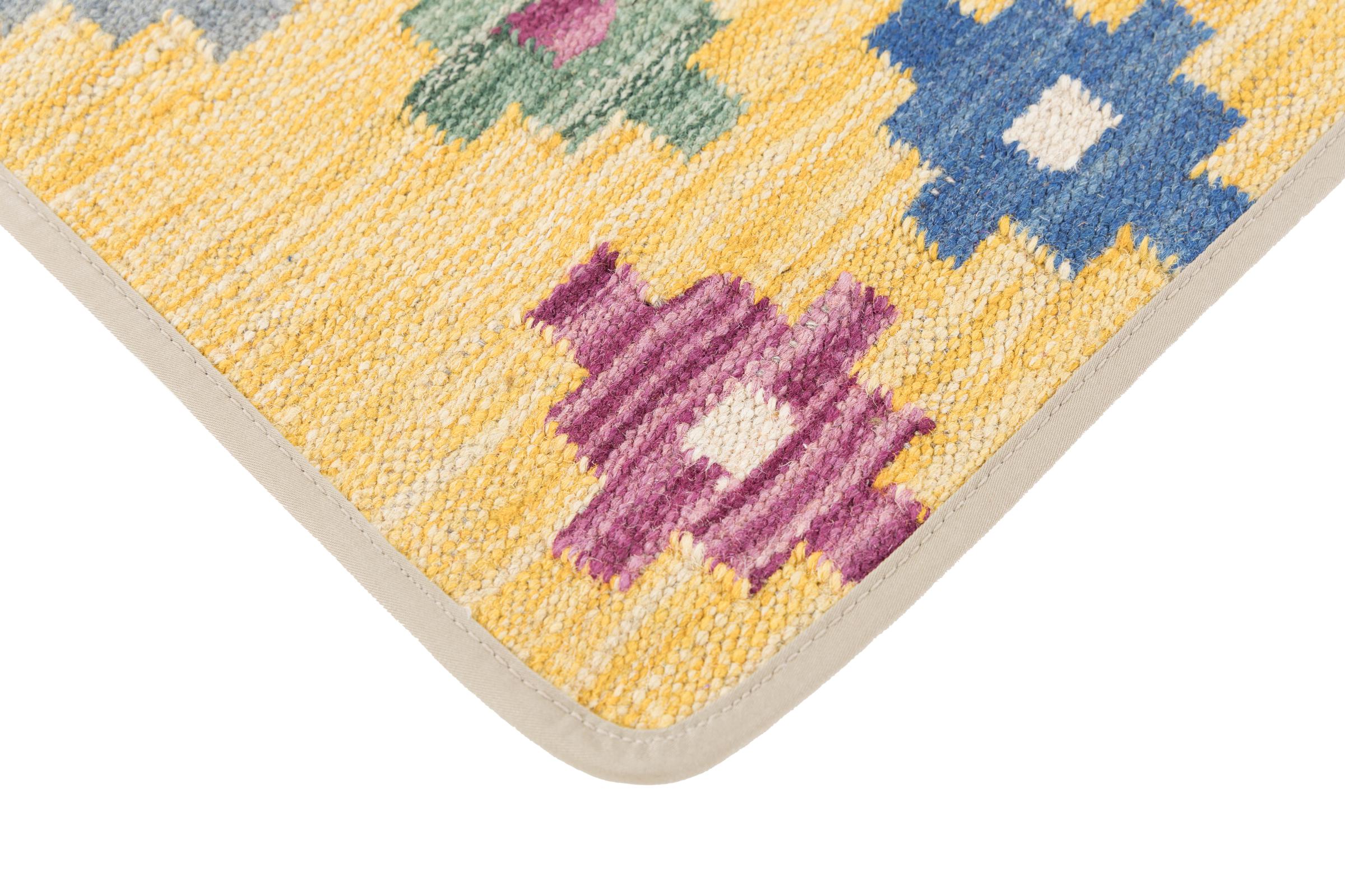 Estas alfombras kilim muestran una diferencia decisiva con las alfombras anudadas a mano - son tejidas a mano. Por lo tanto, no tienen un montón alto de lana y son a menudo más planos y más ásperos que las alfombras de lana anudada. Su fabricación es menos elaborada y por eso suelen ser mucho más baratas. Como ventaja, las alfombras de kilim son también mucho más ligeras y pueden ser colocadas por delante y por detrás. Los kilims tejidos a mano provienen originalmente de la antigua Persia y ahora también se fabrican a menudo en el Afganistán. Tienen patrones bastante simples y directos, que se deben a su técnica de tejido.