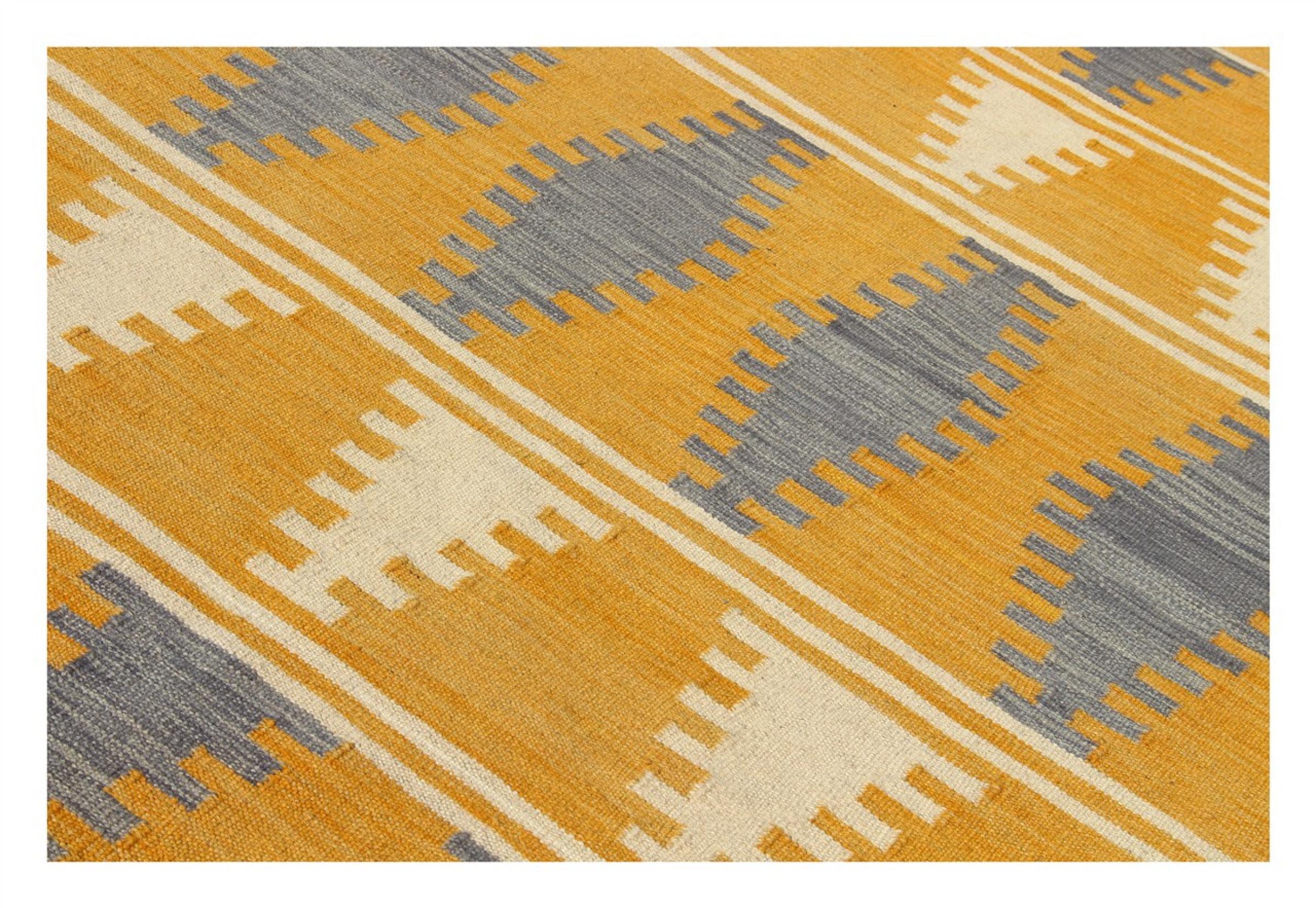 Estas alfombras kilim muestran una diferencia decisiva con las alfombras anudadas a mano - son tejidas a mano. Por lo tanto, no tienen un montón alto de lana y son a menudo más planos y más ásperos que las alfombras de lana anudada. Su fabricación es menos elaborada y por eso suelen ser mucho más baratas. Como ventaja, las alfombras de kilim son también mucho más ligeras y pueden ser colocadas por delante y por detrás. Los kilims tejidos a mano provienen originalmente de la antigua Persia y ahora también se fabrican a menudo en el Afganistán. Tienen patrones bastante simples y directos, que se deben a su técnica de tejido.