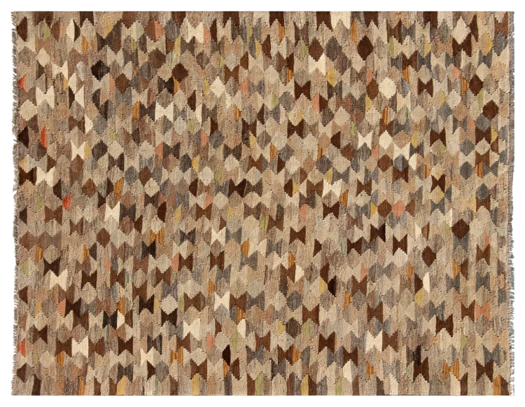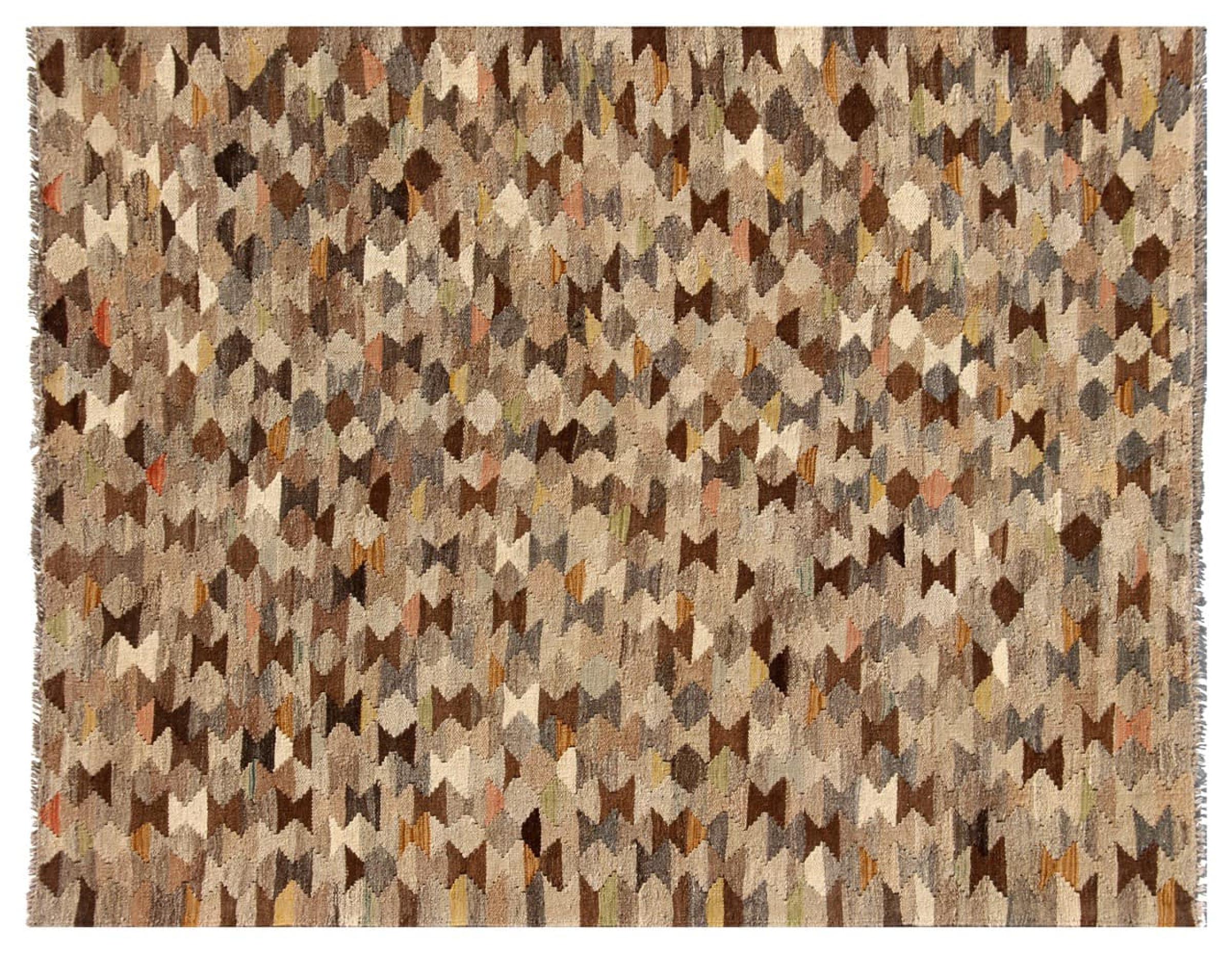 Estas alfombras kilim muestran una diferencia decisiva con las alfombras anudadas a mano - son tejidas a mano. Por lo tanto, no tienen un montón alto de lana y son a menudo más planos y más ásperos que las alfombras de lana anudada. Su fabricación es menos elaborada y por eso suelen ser mucho más baratas. Como ventaja, las alfombras de kilim son también mucho más ligeras y pueden ser colocadas por delante y por detrás. Los kilims tejidos a mano provienen originalmente de la antigua Persia y ahora también se fabrican a menudo en el Afganistán. Tienen patrones bastante simples y directos, que se deben a su técnica de tejido.