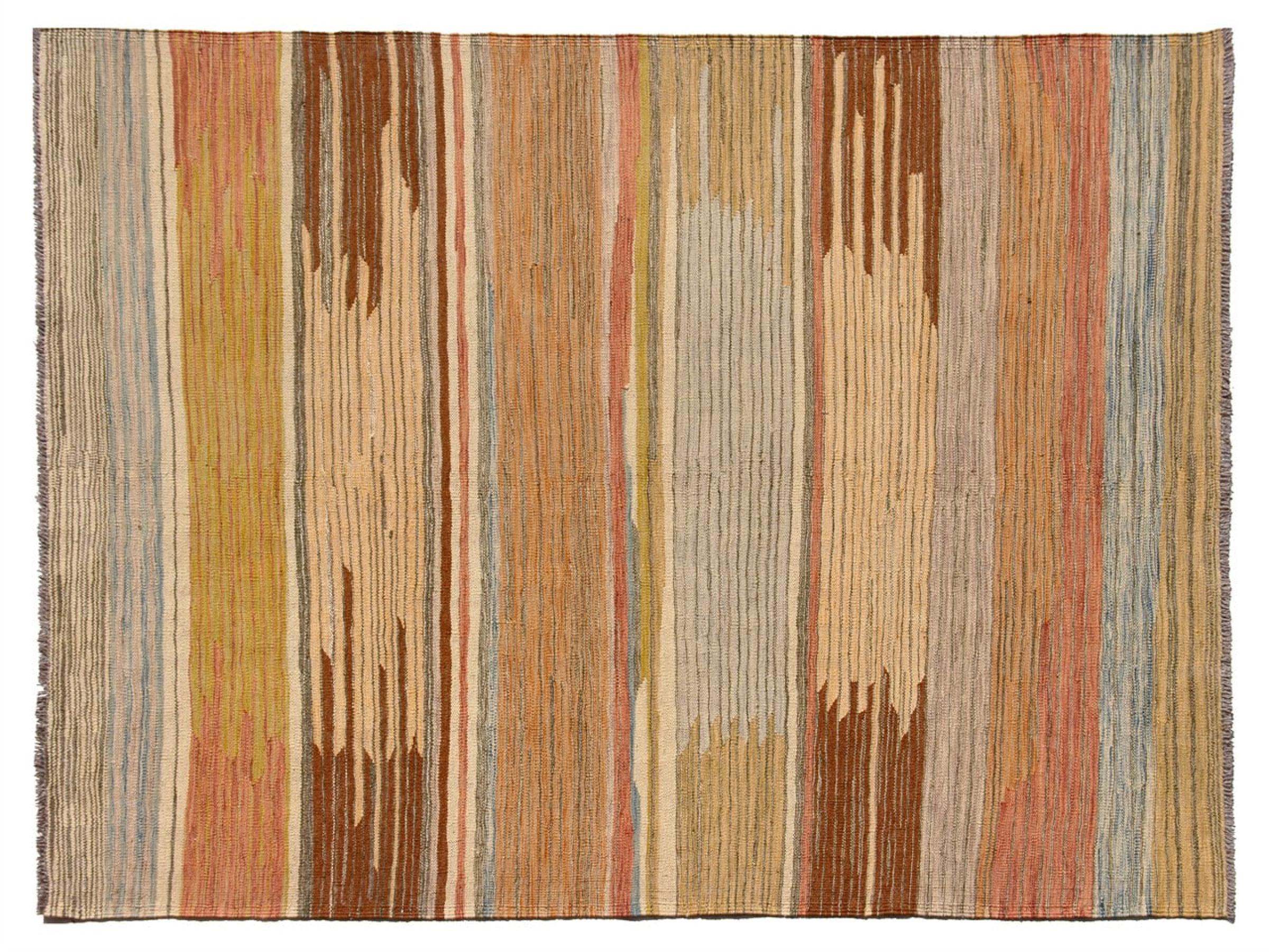 Estas alfombras kilim muestran una diferencia decisiva con las alfombras anudadas a mano - son tejidas a mano. Por lo tanto, no tienen un montón alto de lana y son a menudo más planos y más ásperos que las alfombras de lana anudada. Su fabricación es menos elaborada y por eso suelen ser mucho más baratas. Como ventaja, las alfombras de kilim son también mucho más ligeras y pueden ser colocadas por delante y por detrás. Los kilims tejidos a mano provienen originalmente de la antigua Persia y ahora también se fabrican a menudo en el Afganistán. Tienen patrones bastante simples y directos, que se deben a su técnica de tejido.