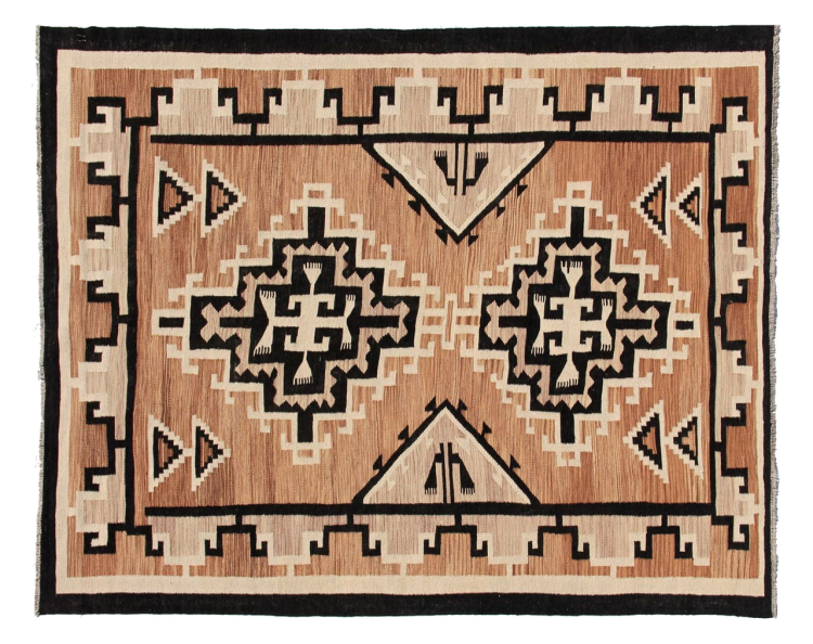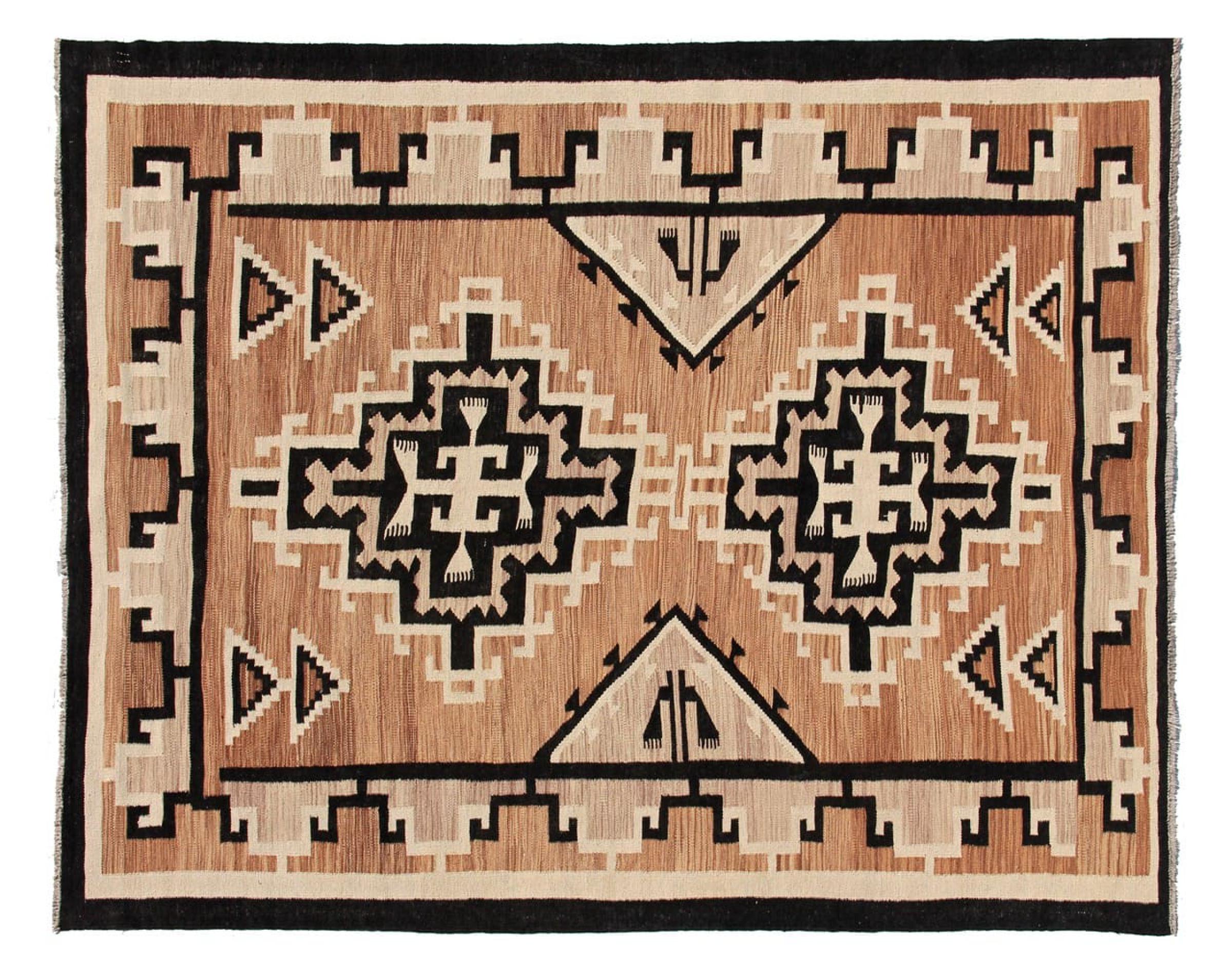 Esta alfombra fue hecha a mano en un telar como un tejido plano. Tejido plano es el término utilizado para describir las alfombras que no tienen pelo. Como el nombre promete, estas alfombras están tejidas y no anudadas. Esto resulta en una alfombra plana con una superficie estructurada. Los tejidos planos no son tan suaves y normalmente más delgados que las alfombras anudadas. Al mismo tiempo, su fabricación es mucho menos compleja y por lo general se pueden disponer por ambos lados (frontal y posterior). Sus patrones suelen ser geométricos, lo cual está determinado por el tejido.