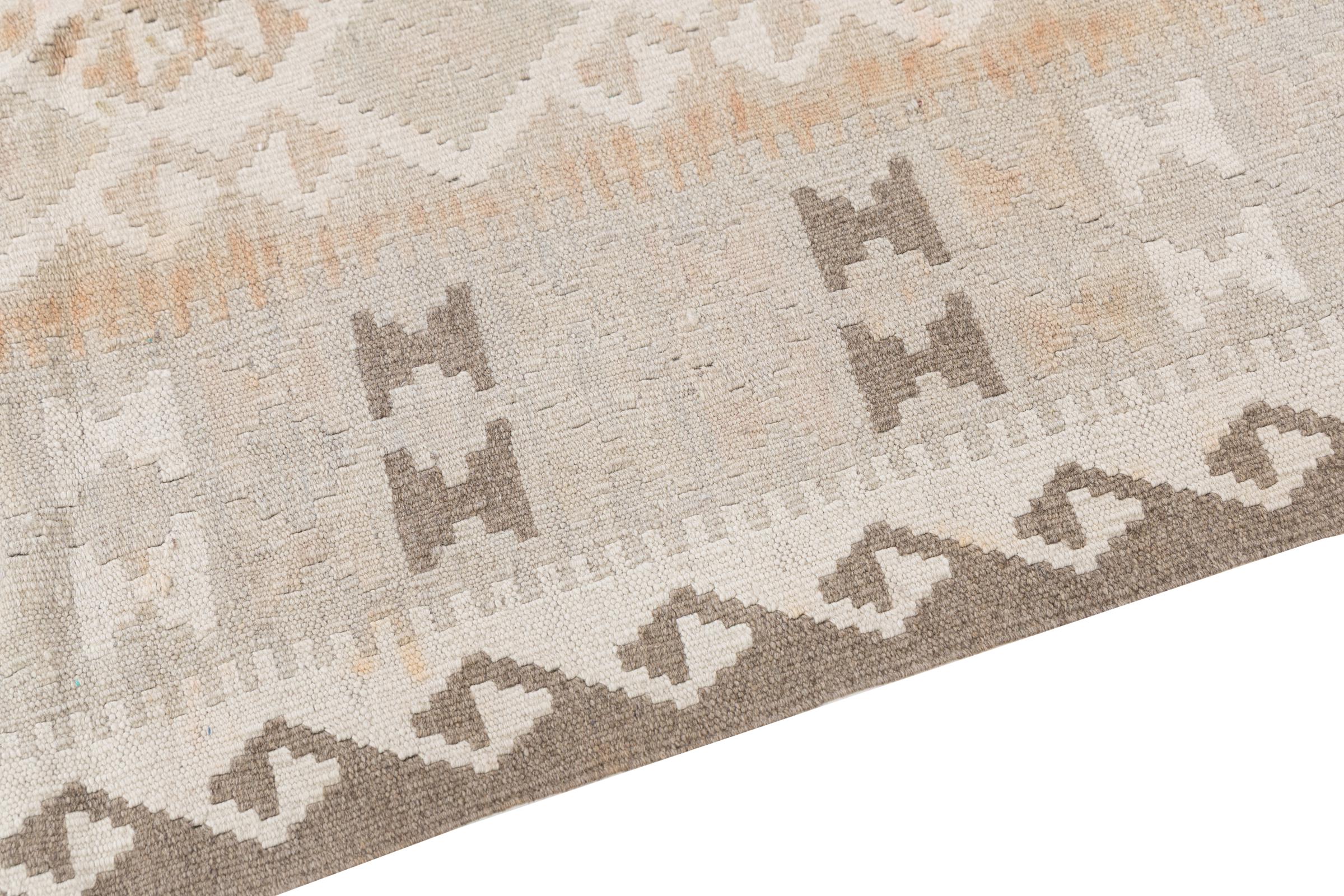 Esta alfombra kilim es muy especial porque no sólo se tejió a mano, sino que su lana también se hiló a mano. La colección Kelim Heritage ofrece un diseño muy moderno en colores pastel y combinado con la artesanía más tradicional de Oriente. De gran valor y absolutamente asequible. No volverá a encontrar una pieza única como ésta.