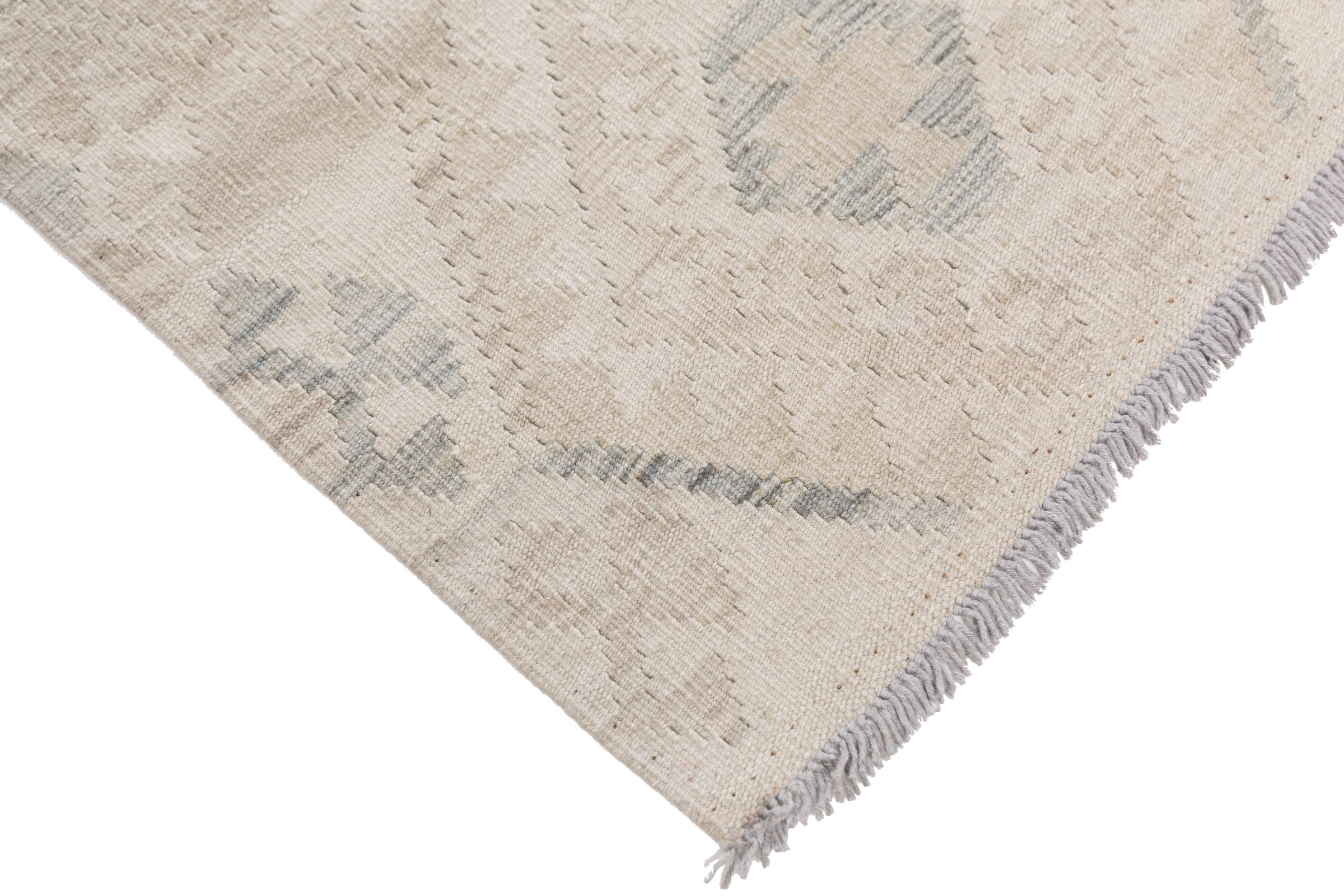 Esta alfombra kilim es muy especial porque no sólo se tejió a mano, sino que su lana también se hiló a mano. La colección Kelim Heritage ofrece un diseño muy moderno en colores pastel y combinado con la artesanía más tradicional de Oriente. De gran valor y absolutamente asequible. No volverá a encontrar una pieza única como ésta.