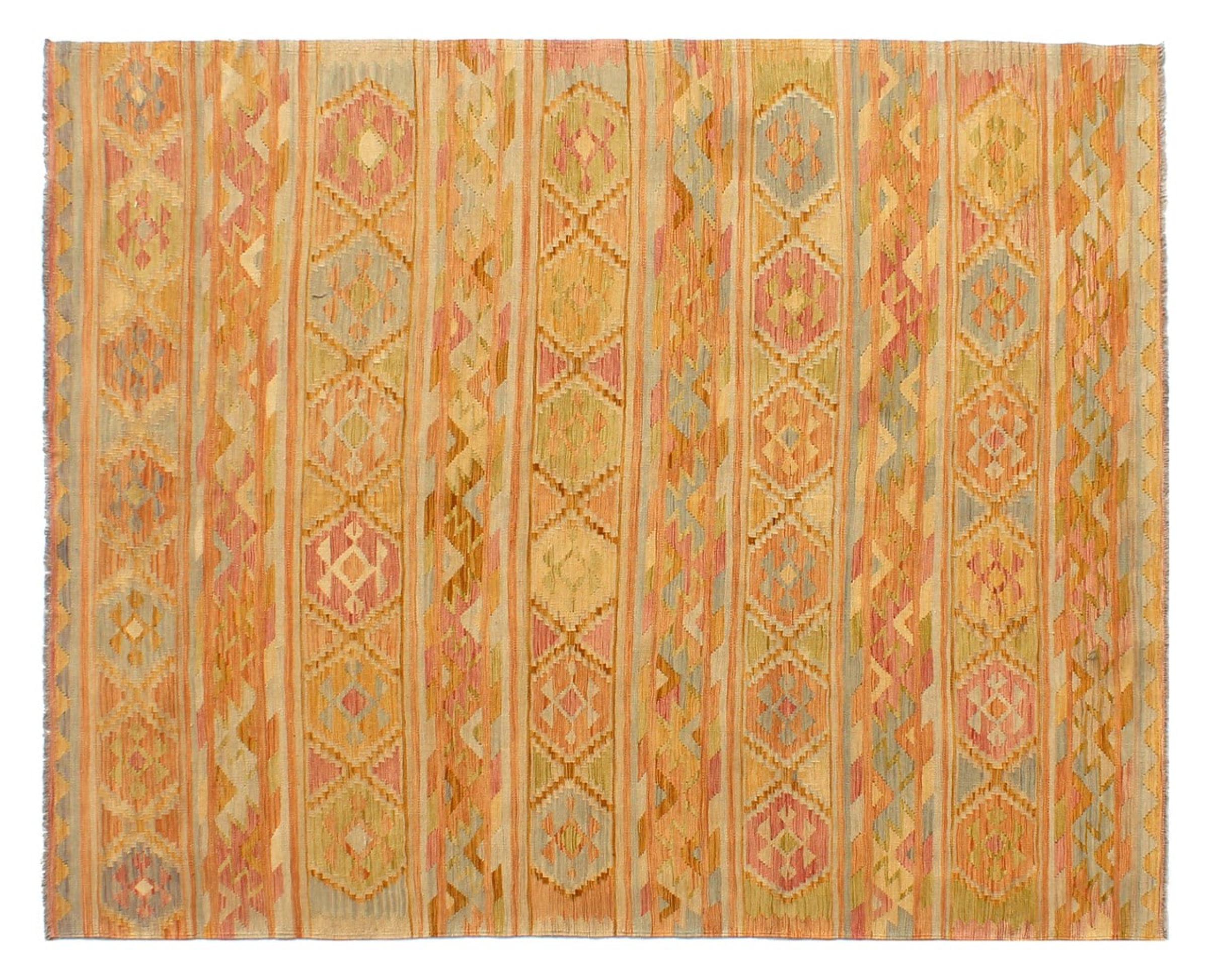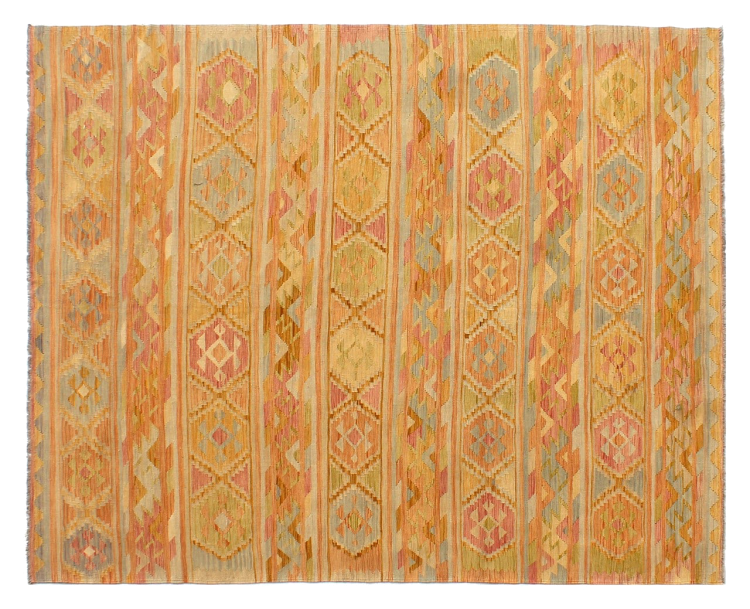 Estas alfombras kilim muestran una diferencia decisiva con las alfombras anudadas a mano - son tejidas a mano. Por lo tanto, no tienen un montón alto de lana y son a menudo más planos y más ásperos que las alfombras de lana anudada. Su fabricación es menos elaborada y por eso suelen ser mucho más baratas. Como ventaja, las alfombras de kilim son también mucho más ligeras y pueden ser colocadas por delante y por detrás. Los kilims tejidos a mano provienen originalmente de la antigua Persia y ahora también se fabrican a menudo en el Afganistán. Tienen patrones bastante simples y directos, que se deben a su técnica de tejido.