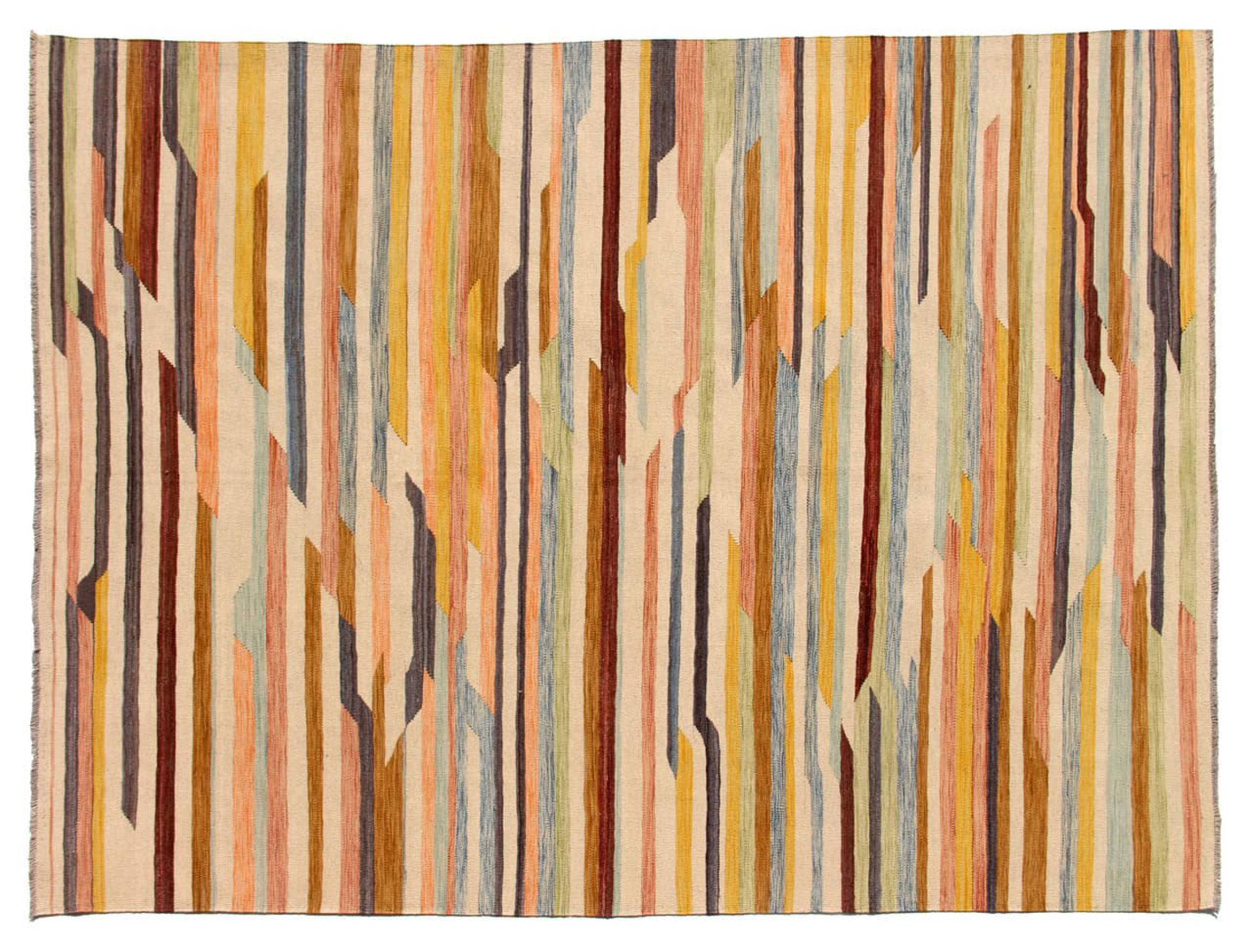 Estas alfombras kilim muestran una diferencia decisiva con las alfombras anudadas a mano - son tejidas a mano. Por lo tanto, no tienen un montón alto de lana y son a menudo más planos y más ásperos que las alfombras de lana anudada. Su fabricación es menos elaborada y por eso suelen ser mucho más baratas. Como ventaja, las alfombras de kilim son también mucho más ligeras y pueden ser colocadas por delante y por detrás. Los kilims tejidos a mano provienen originalmente de la antigua Persia y ahora también se fabrican a menudo en el Afganistán. Tienen patrones bastante simples y directos, que se deben a su técnica de tejido.