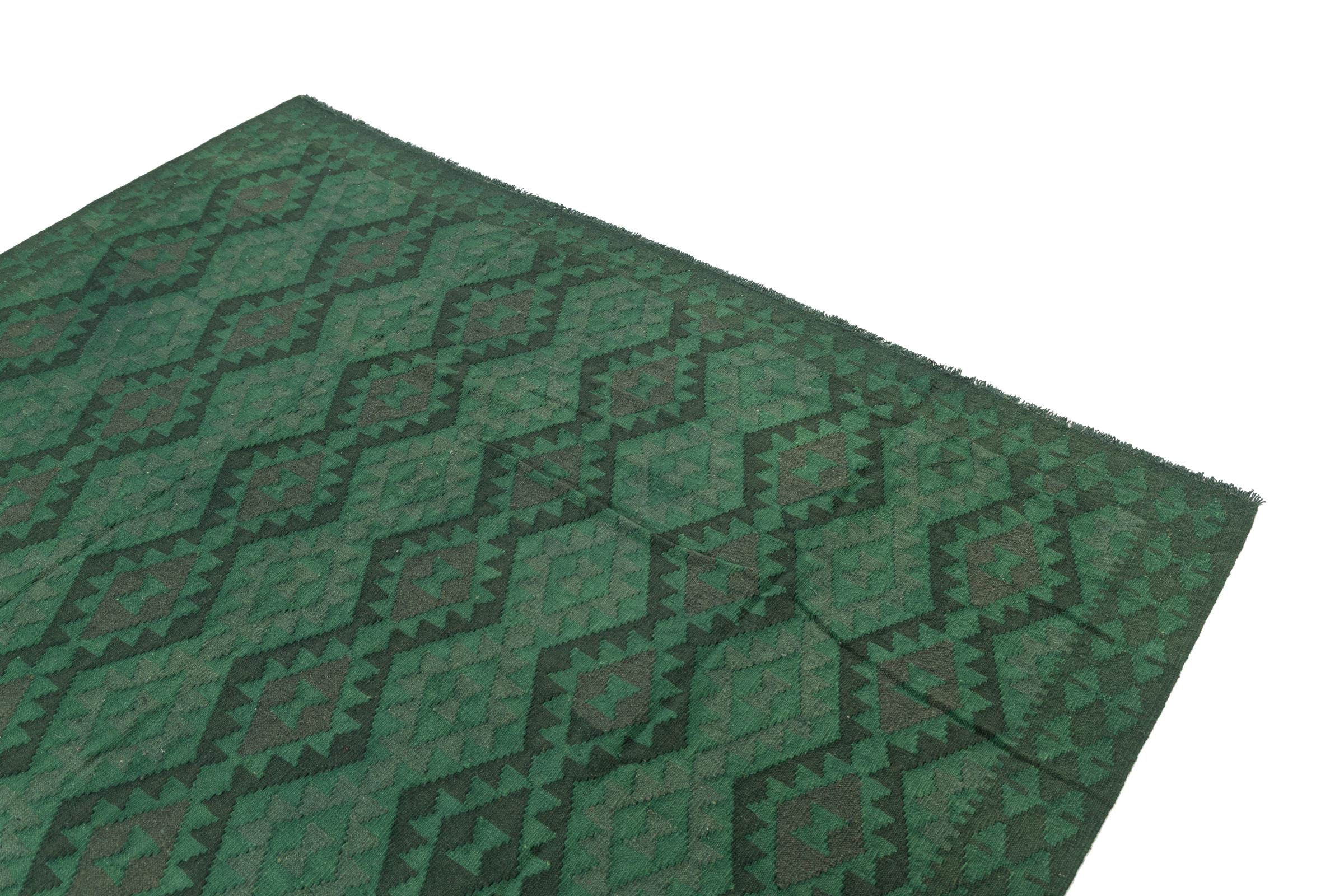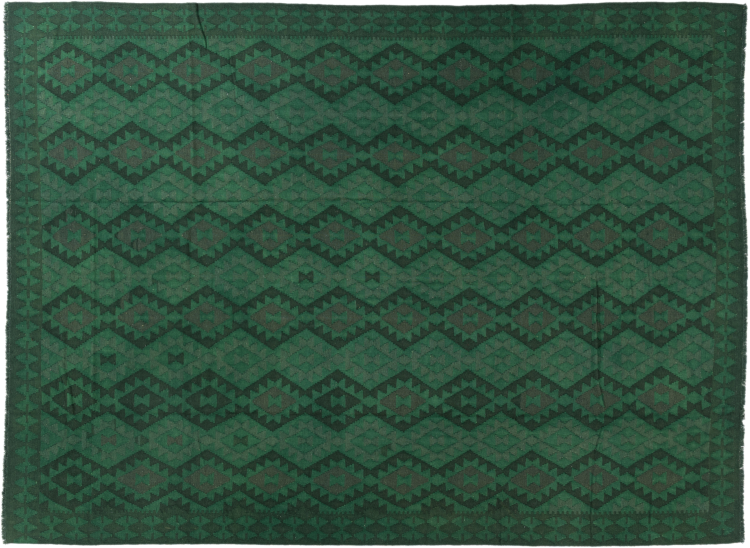 Esta alfombra fue hecha a mano en un telar como un tejido plano. Tejido plano es el término utilizado para describir las alfombras que no tienen pelo. Como el nombre promete, estas alfombras están tejidas y no anudadas. Esto resulta en una alfombra plana con una superficie estructurada. Los tejidos planos no son tan suaves y normalmente más delgados que las alfombras anudadas. Al mismo tiempo, su fabricación es mucho menos compleja y por lo general se pueden disponer por ambos lados (frontal y posterior). Sus patrones suelen ser geométricos, lo cual está determinado por el tejido.