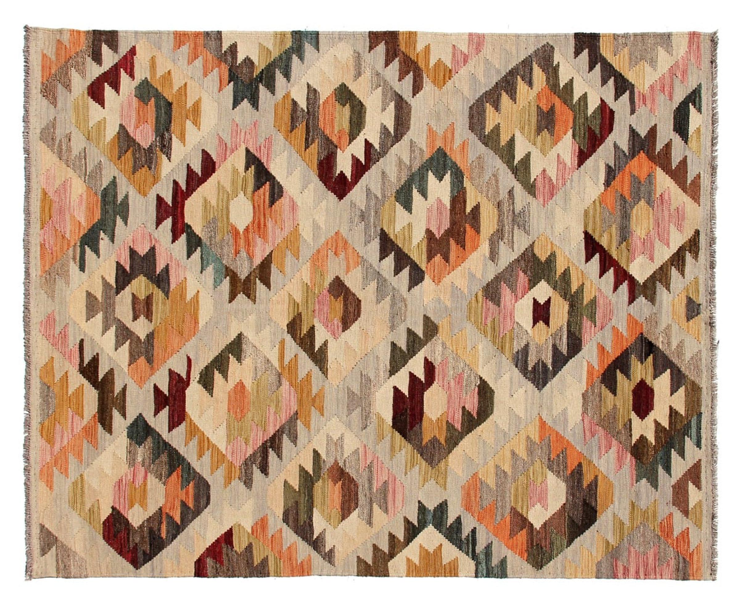 Estas alfombras kilim muestran una diferencia decisiva con las alfombras anudadas a mano - son tejidas a mano. Por lo tanto, no tienen un montón alto de lana y son a menudo más planos y más ásperos que las alfombras de lana anudada. Su fabricación es menos elaborada y por eso suelen ser mucho más baratas. Como ventaja, las alfombras de kilim son también mucho más ligeras y pueden ser colocadas por delante y por detrás. Los kilims tejidos a mano provienen originalmente de la antigua Persia y ahora también se fabrican a menudo en el Afganistán. Tienen patrones bastante simples y directos, que se deben a su técnica de tejido.