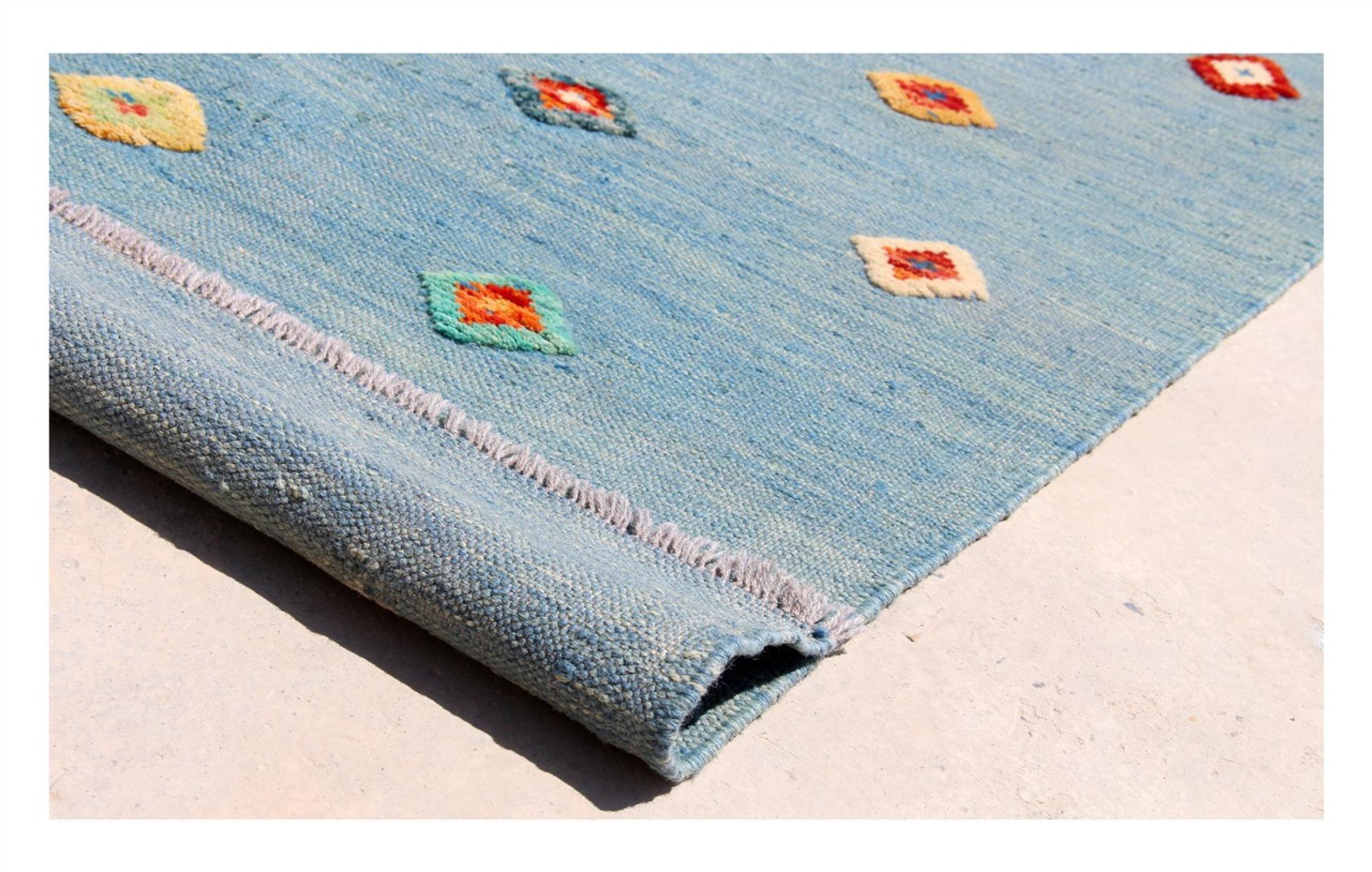Estas alfombras kilim muestran una diferencia decisiva con las alfombras anudadas a mano - son tejidas a mano. Por lo tanto, no tienen un montón alto de lana y son a menudo más planos y más ásperos que las alfombras de lana anudada. Su fabricación es menos elaborada y por eso suelen ser mucho más baratas. Como ventaja, las alfombras de kilim son también mucho más ligeras y pueden ser colocadas por delante y por detrás. Los kilims tejidos a mano provienen originalmente de la antigua Persia y ahora también se fabrican a menudo en el Afganistán. Tienen patrones bastante simples y directos, que se deben a su técnica de tejido.