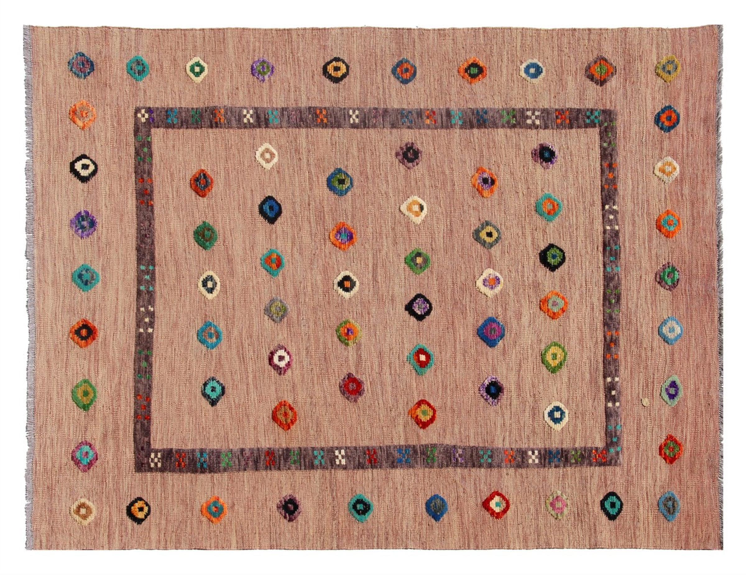 Alfombra número: 315464006549054 Tamaño: 192x145 cm Espesor: alrededor de 5 mm Elaboración: Tejido a mano Crespón: Lana hilada a mano Urdimbre: Lana de oveja Origen: Afganistán Edad: Nuevo Peso: alrededor de 6 kg También conocido como Kilim, Qilim, Chilim, Afgan, Afghán Cantidad en stock: Única - Solo 1 en stock