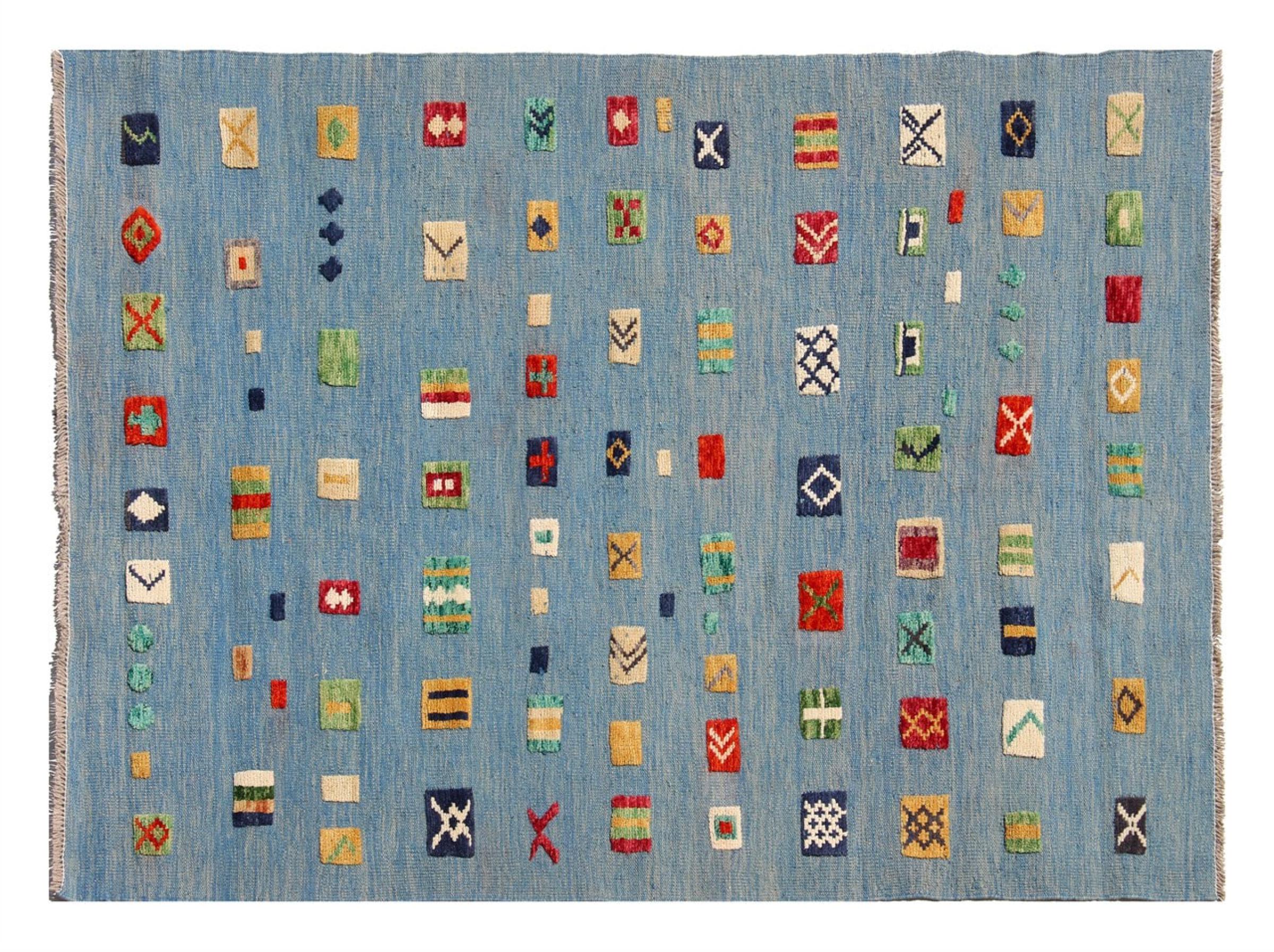 Alfombra número: 314953003855362 Tamaño: 193x147 cm Espesor: alrededor de 5 mm Elaboración: Tejido a mano Crespón: Lana hilada a mano Urdimbre: Lana de oveja Origen: Afganistán Edad: Nuevo Peso: alrededor de 6 kg También conocido como Kilim, Qilim, Chilim, Afgan, Afghán Cantidad en stock: Única - Solo 1 en stock