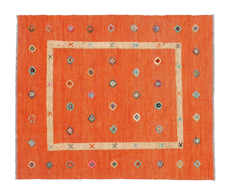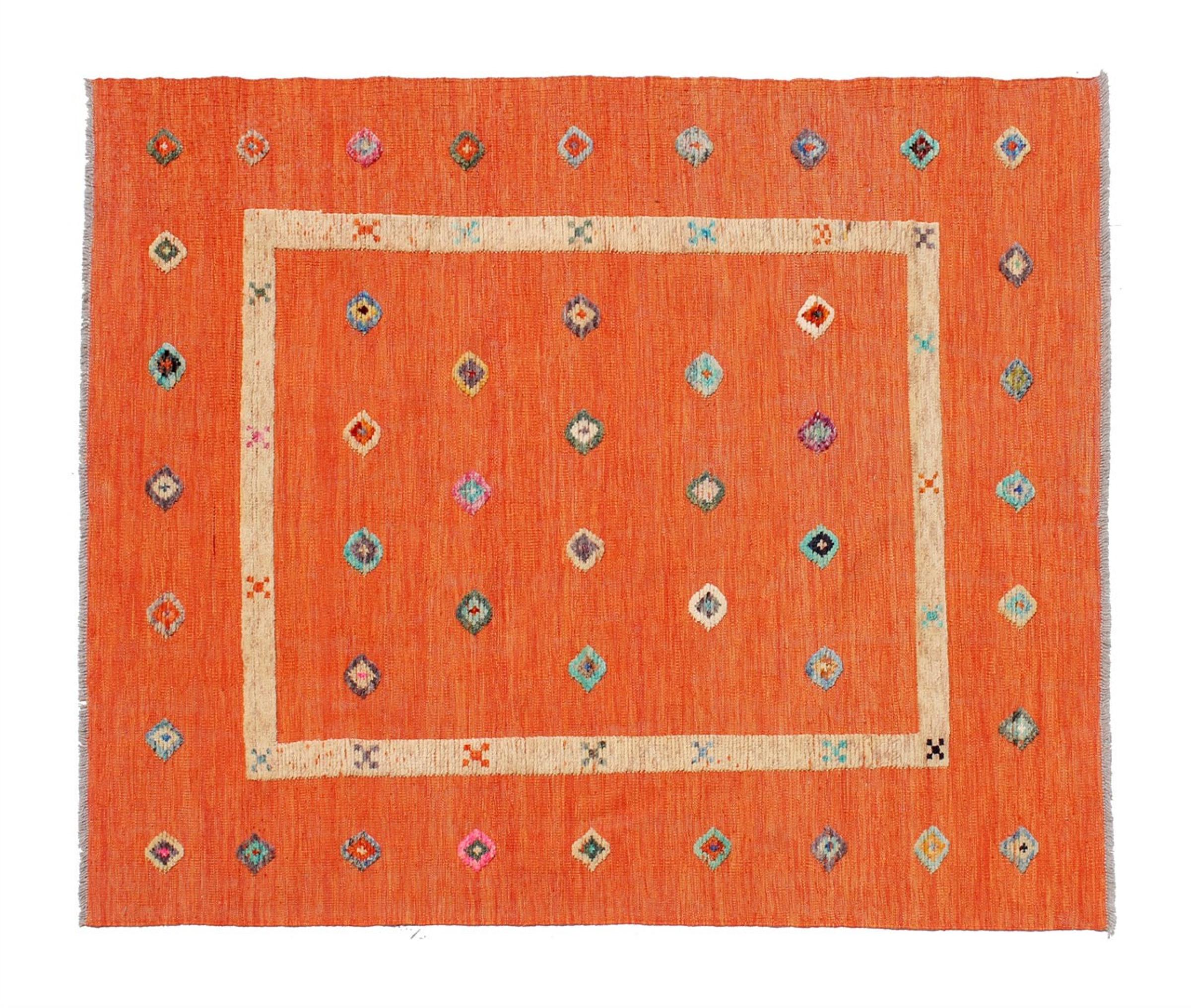 Alfombra número: 315653007840311 Tamaño: 193x158 cm Espesor: alrededor de 5 mm Elaboración: Tejido a mano Crespón: Lana hilada a mano Urdimbre: Lana de oveja Origen: Afganistán Edad: Nuevo Peso: alrededor de 6 kg También conocido como Kilim, Qilim, Chilim, Afgan, Afghán Cantidad en stock: Única - Solo 1 en stock