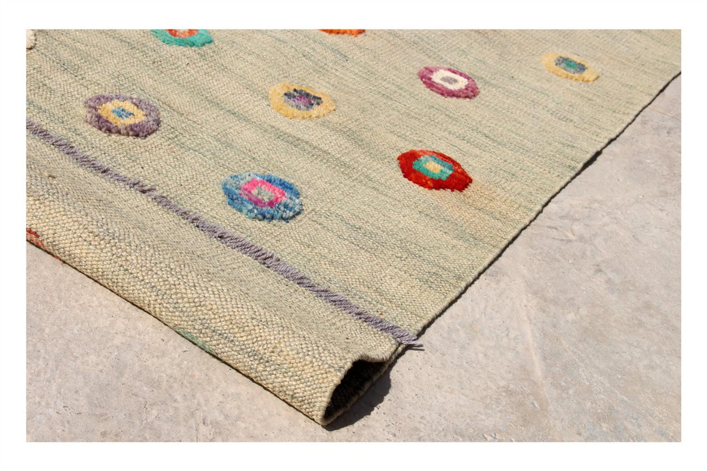 Al mismo tiempo, la Edición Kelim Afgan también incluye variantes de color interpretadas de manera moderna. Esto incluye tonos naturales armónicos como el beige, el gris o el oliva, así como acentos vibrantes en turquesa, verde, rosa o composiciones multicolores. Esta variedad hace que los kelims afganos sean especialmente versátiles: pueden ser utilizados tanto como un atractivo tradicional como un elemento de diseño elegante en conceptos de vivienda modernos.
