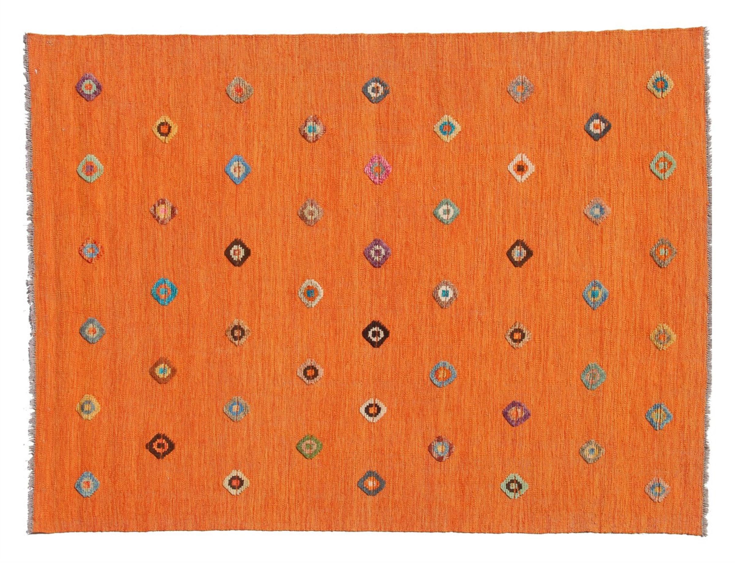 Estas alfombras kilim muestran una diferencia decisiva con las alfombras anudadas a mano - son tejidas a mano. Por lo tanto, no tienen un montón alto de lana y son a menudo más planos y más ásperos que las alfombras de lana anudada. Su fabricación es menos elaborada y por eso suelen ser mucho más baratas. Como ventaja, las alfombras de kilim son también mucho más ligeras y pueden ser colocadas por delante y por detrás. Los kilims tejidos a mano provienen originalmente de la antigua Persia y ahora también se fabrican a menudo en el Afganistán. Tienen patrones bastante simples y directos, que se deben a su técnica de tejido.