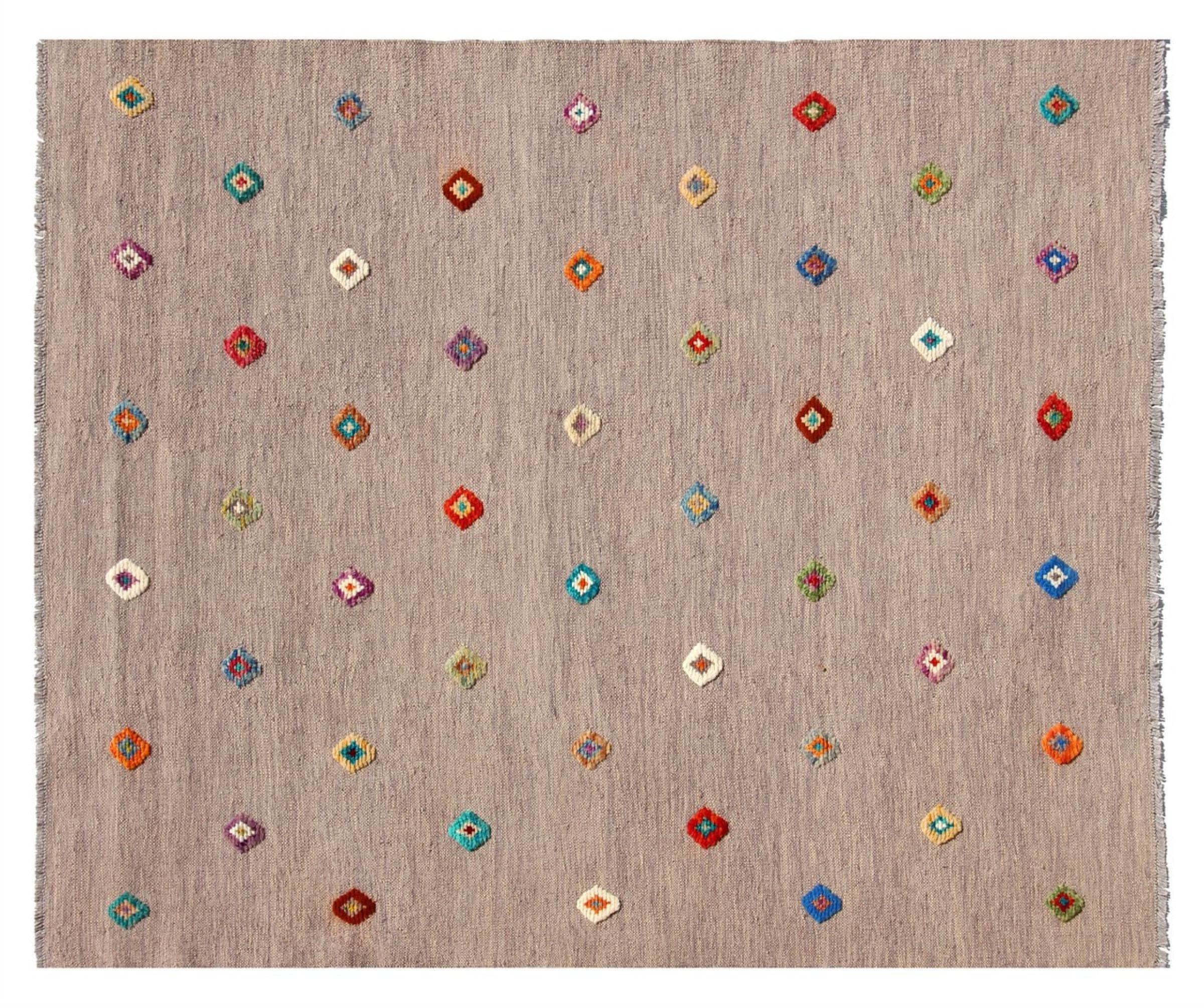 Alfombra número: 315811008285130 Tamaño: 197x161 cm Espesor: alrededor de 5 mm Elaboración: Tejido a mano Crespón: Lana hilada a mano Urdimbre: Lana de oveja Origen: Afganistán Edad: Nuevo Peso: alrededor de 6 kg También conocido como Kilim, Qilim, Chilim, Afgan, Afghán Cantidad en stock: Única - Solo 1 en stock