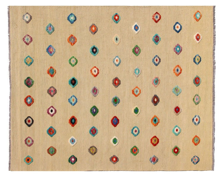 Alfombra número: 315813005893756 Tamaño: 198x151 cm Espesor: alrededor de 5 mm Elaboración: Tejido a mano Crespón: Lana hilada a mano Urdimbre: Lana de oveja Origen: Afganistán Edad: Nuevo Peso: alrededor de 6 kg También conocido como Kilim, Qilim, Chilim, Afgan, Afghán Cantidad en stock: Única - Solo 1 en stock