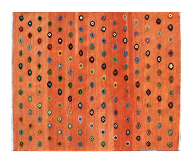 Esta alfombra fue hecha a mano en un telar como un tejido plano. Tejido plano es el término utilizado para describir las alfombras que no tienen pelo. Como el nombre promete, estas alfombras están tejidas y no anudadas. Esto resulta en una alfombra plana con una superficie estructurada. Los tejidos planos no son tan suaves y normalmente más delgados que las alfombras anudadas. Al mismo tiempo, su fabricación es mucho menos compleja y por lo general se pueden disponer por ambos lados (frontal y posterior). Sus patrones suelen ser geométricos, lo cual está determinado por el tejido.