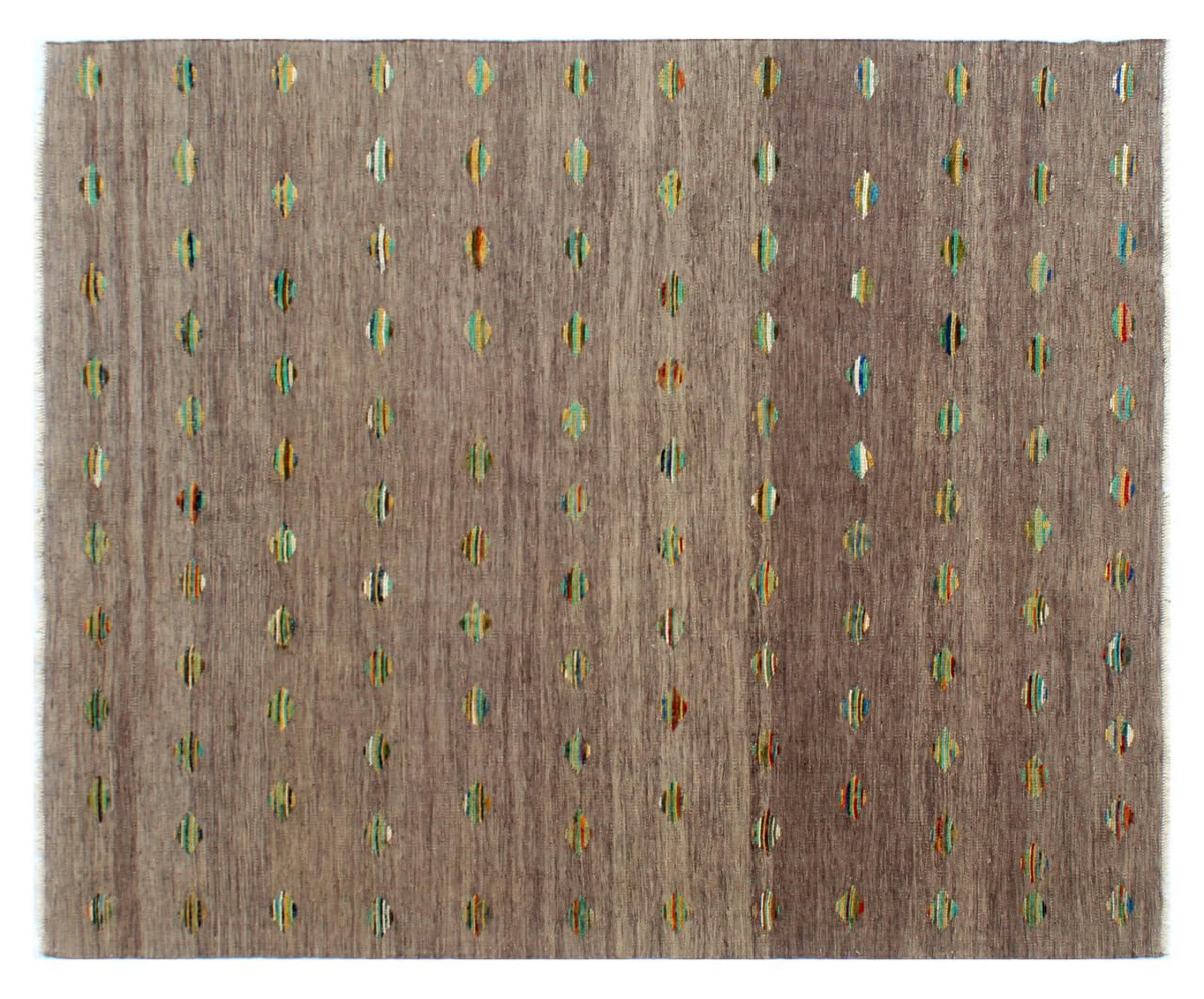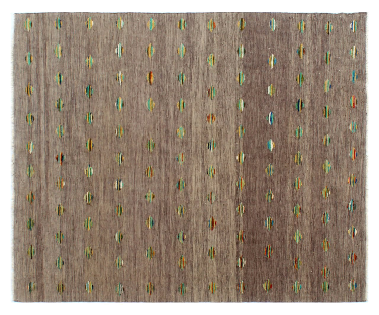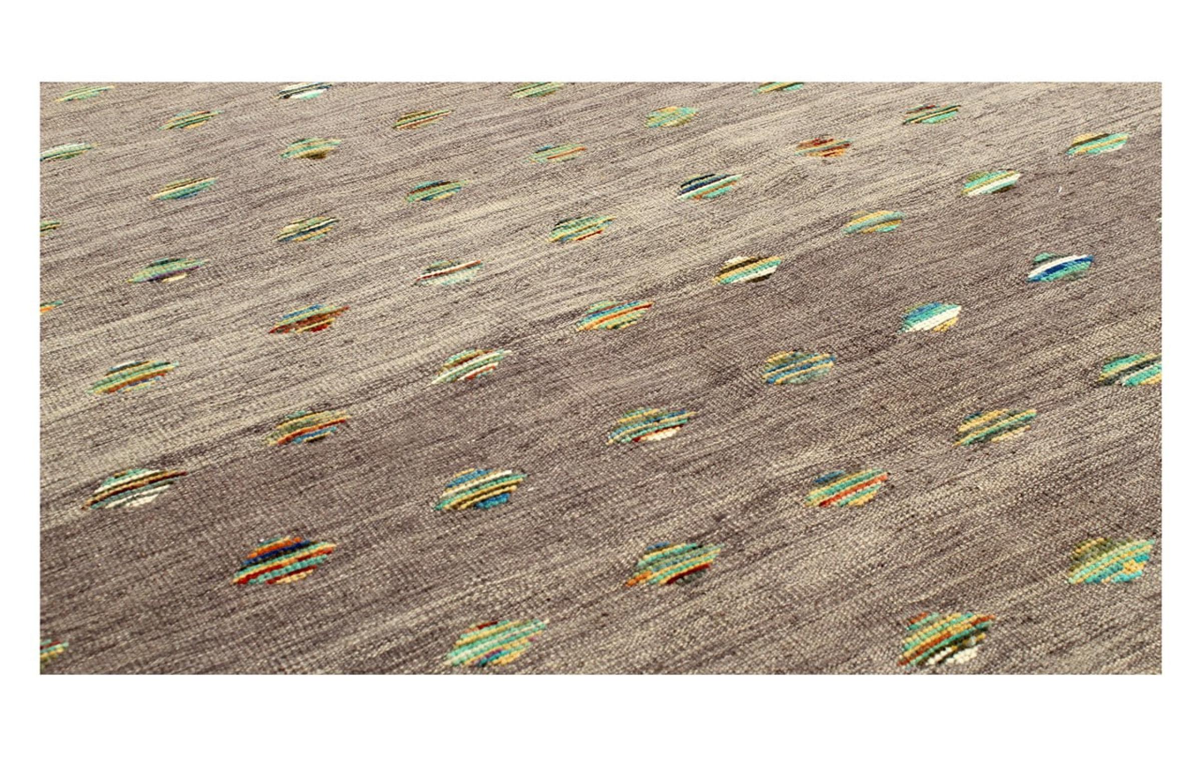 Esta alfombra fue hecha a mano en un telar como un tejido plano. Tejido plano es el término utilizado para describir las alfombras que no tienen pelo. Como el nombre promete, estas alfombras están tejidas y no anudadas. Esto resulta en una alfombra plana con una superficie estructurada. Los tejidos planos no son tan suaves y normalmente más delgados que las alfombras anudadas. Al mismo tiempo, su fabricación es mucho menos compleja y por lo general se pueden disponer por ambos lados (frontal y posterior). Sus patrones suelen ser geométricos, lo cual está determinado por el tejido.