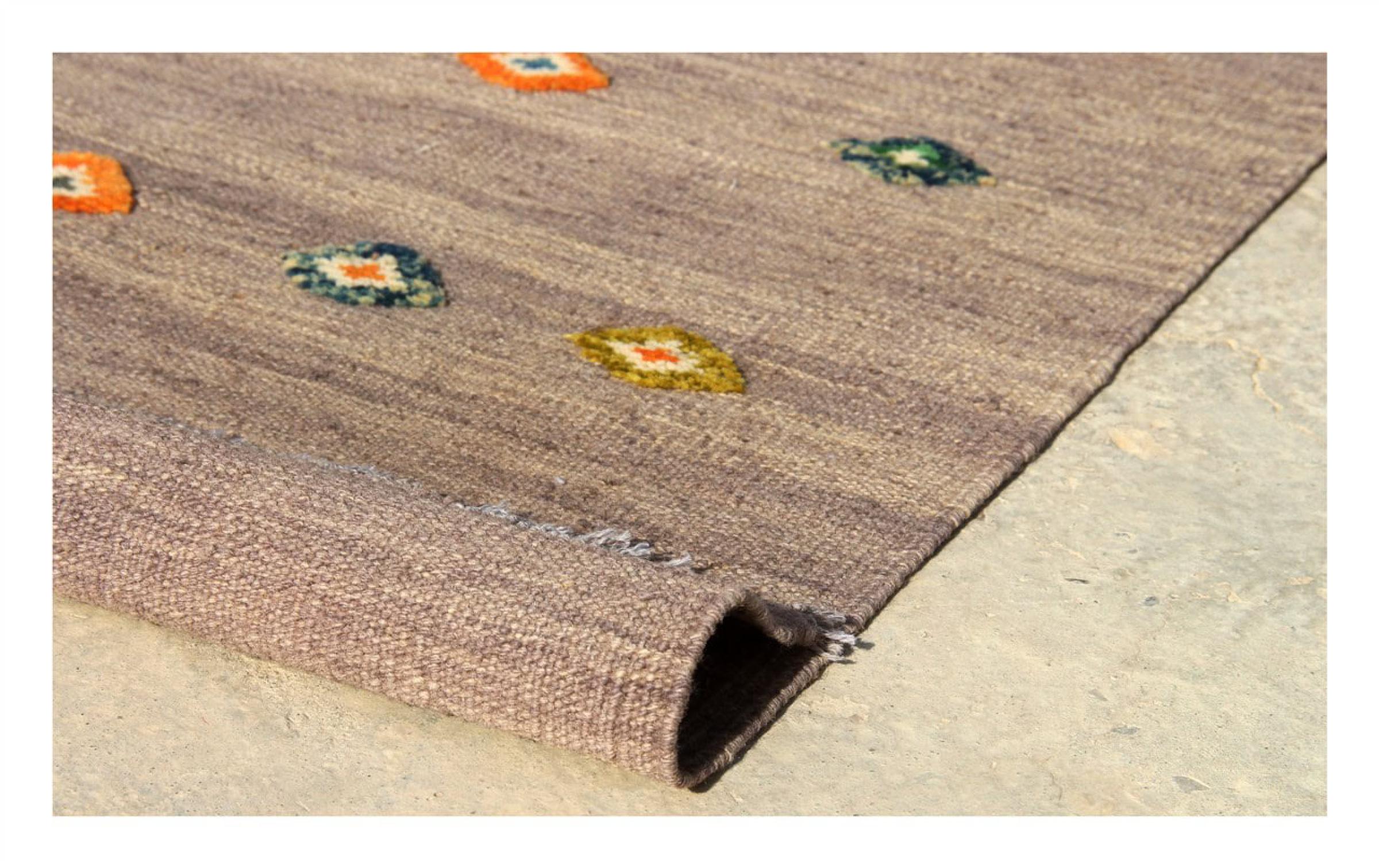 Estas alfombras kilim muestran una diferencia decisiva con las alfombras anudadas a mano - son tejidas a mano. Por lo tanto, no tienen un montón alto de lana y son a menudo más planos y más ásperos que las alfombras de lana anudada. Su fabricación es menos elaborada y por eso suelen ser mucho más baratas. Como ventaja, las alfombras de kilim son también mucho más ligeras y pueden ser colocadas por delante y por detrás. Los kilims tejidos a mano provienen originalmente de la antigua Persia y ahora también se fabrican a menudo en el Afganistán. Tienen patrones bastante simples y directos, que se deben a su técnica de tejido.