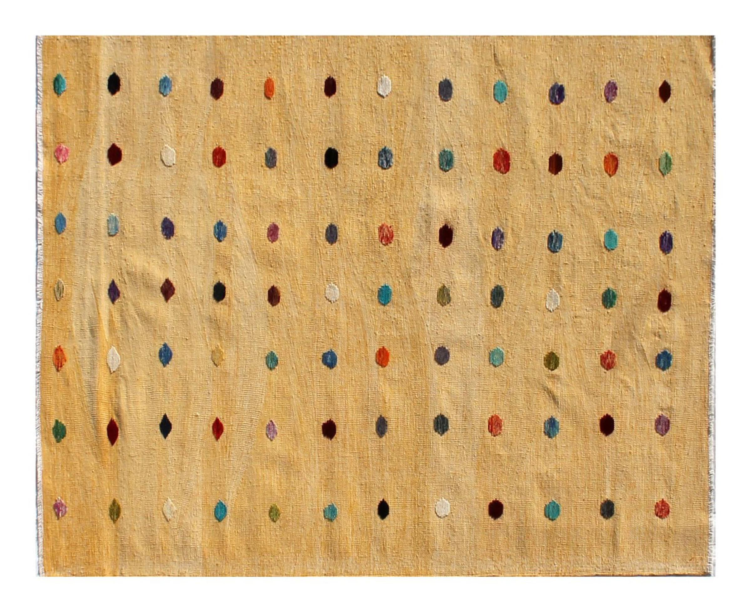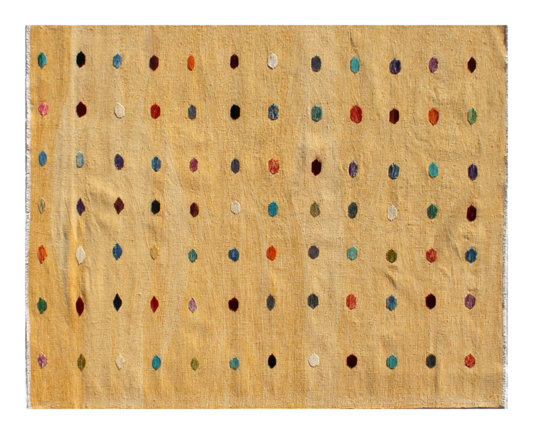 Esta alfombra fue hecha a mano en un telar como un tejido plano. Tejido plano es el término utilizado para describir las alfombras que no tienen pelo. Como el nombre promete, estas alfombras están tejidas y no anudadas. Esto resulta en una alfombra plana con una superficie estructurada. Los tejidos planos no son tan suaves y normalmente más delgados que las alfombras anudadas. Al mismo tiempo, su fabricación es mucho menos compleja y por lo general se pueden disponer por ambos lados (frontal y posterior). Sus patrones suelen ser geométricos, lo cual está determinado por el tejido.