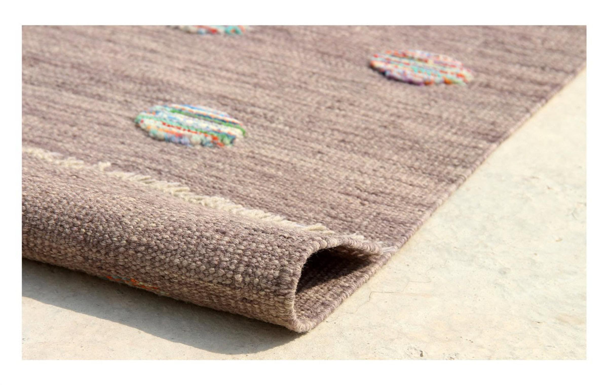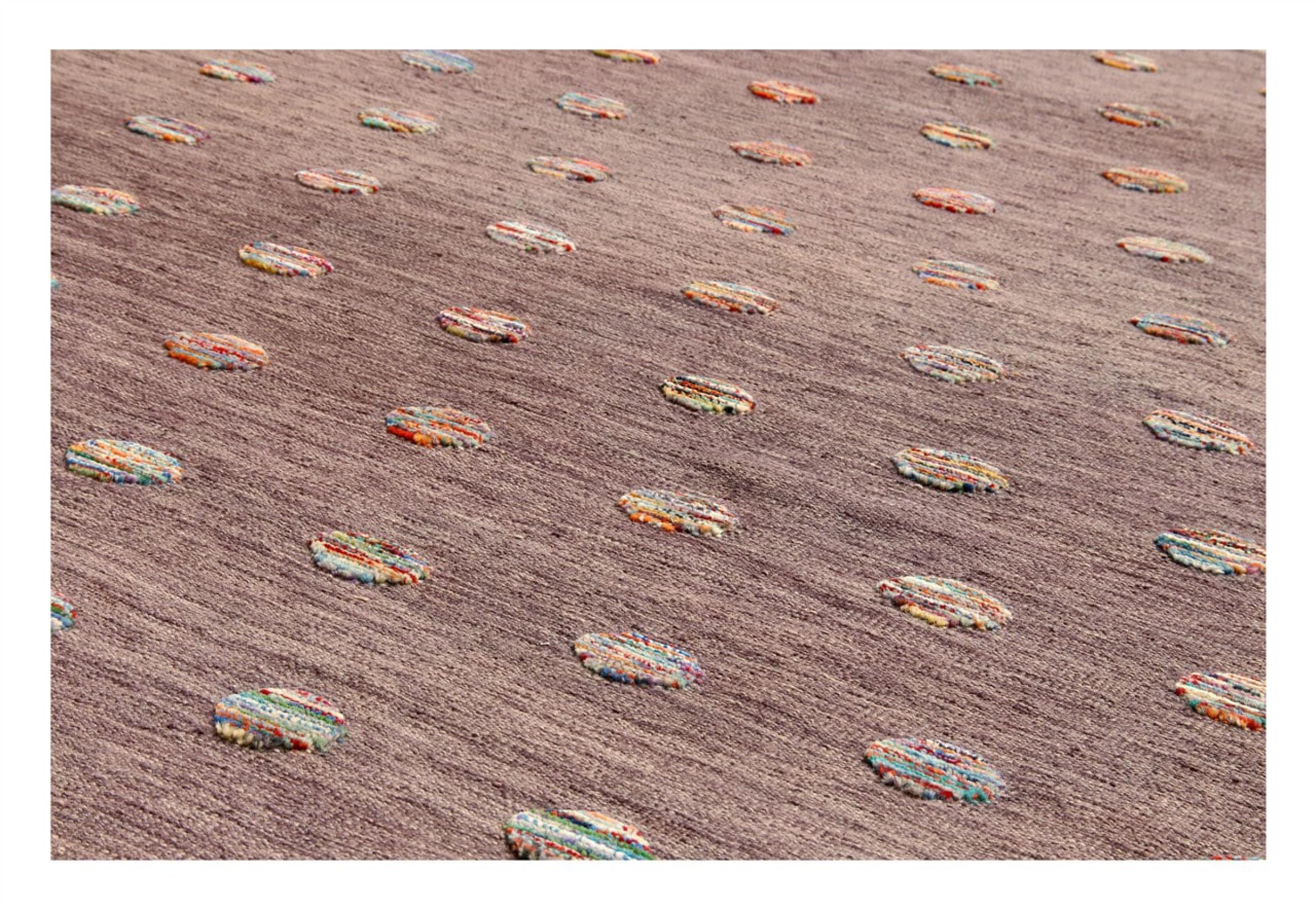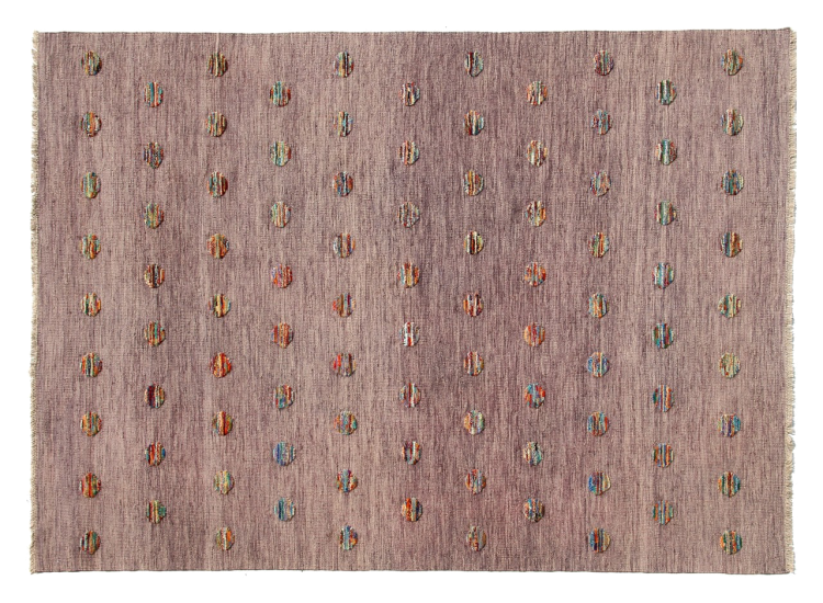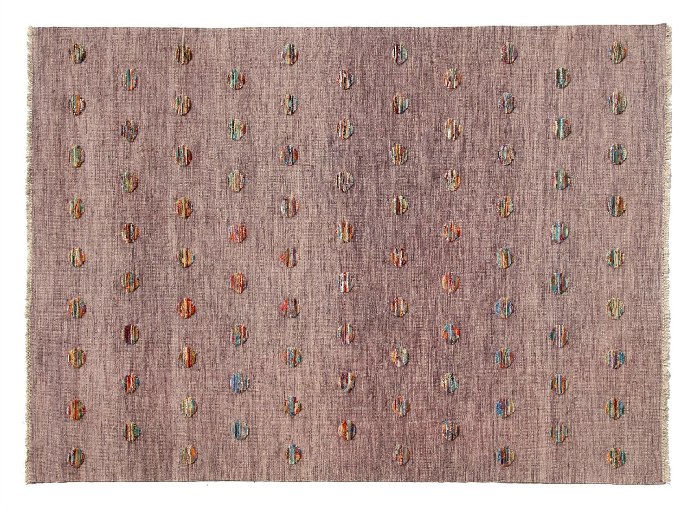 Esta alfombra fue hecha a mano en un telar como un tejido plano. Tejido plano es el término utilizado para describir las alfombras que no tienen pelo. Como el nombre promete, estas alfombras están tejidas y no anudadas. Esto resulta en una alfombra plana con una superficie estructurada. Los tejidos planos no son tan suaves y normalmente más delgados que las alfombras anudadas. Al mismo tiempo, su fabricación es mucho menos compleja y por lo general se pueden disponer por ambos lados (frontal y posterior). Sus patrones suelen ser geométricos, lo cual está determinado por el tejido.