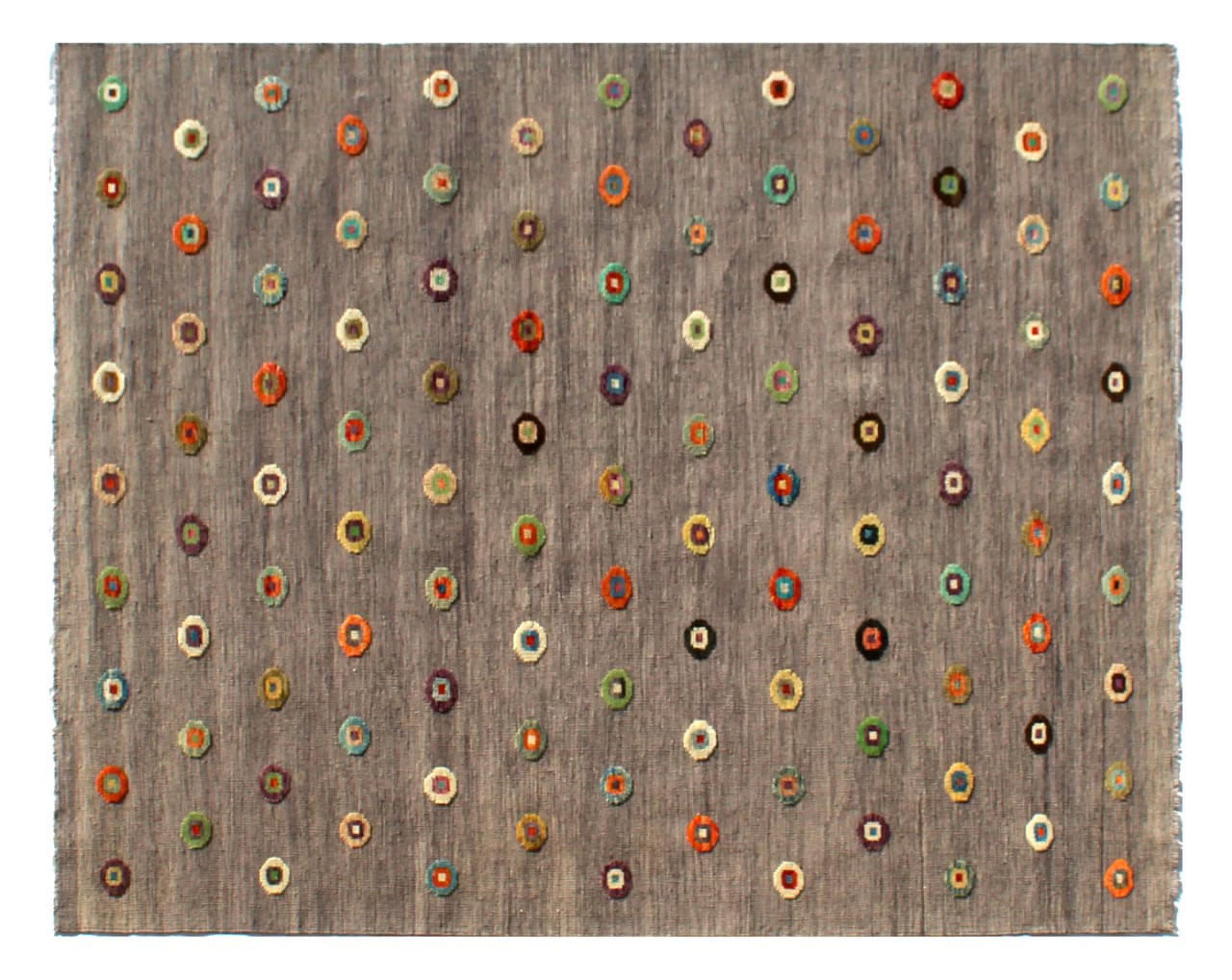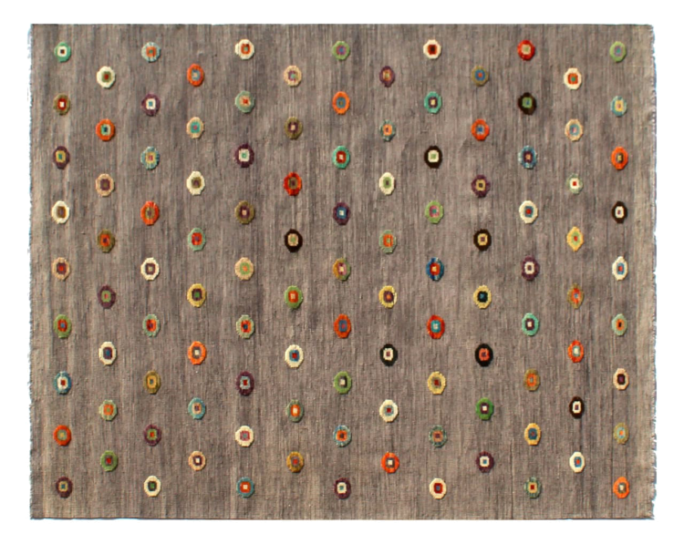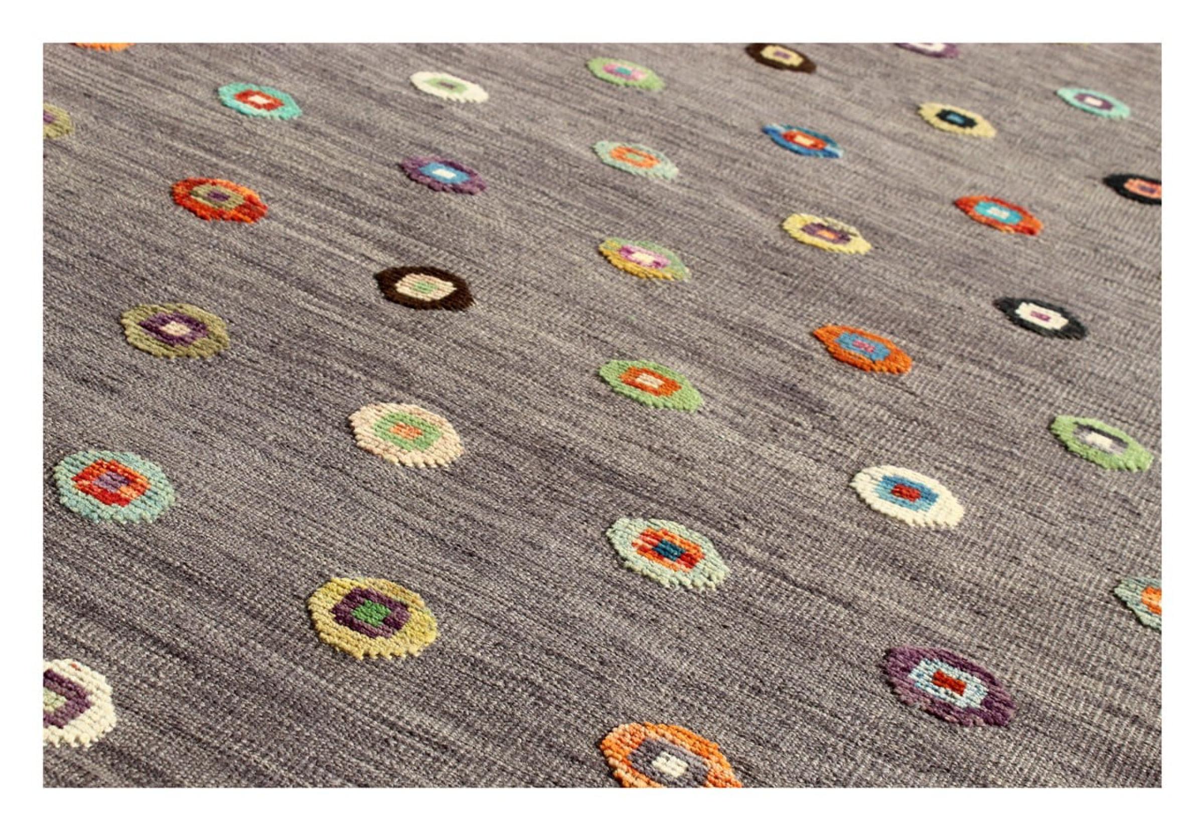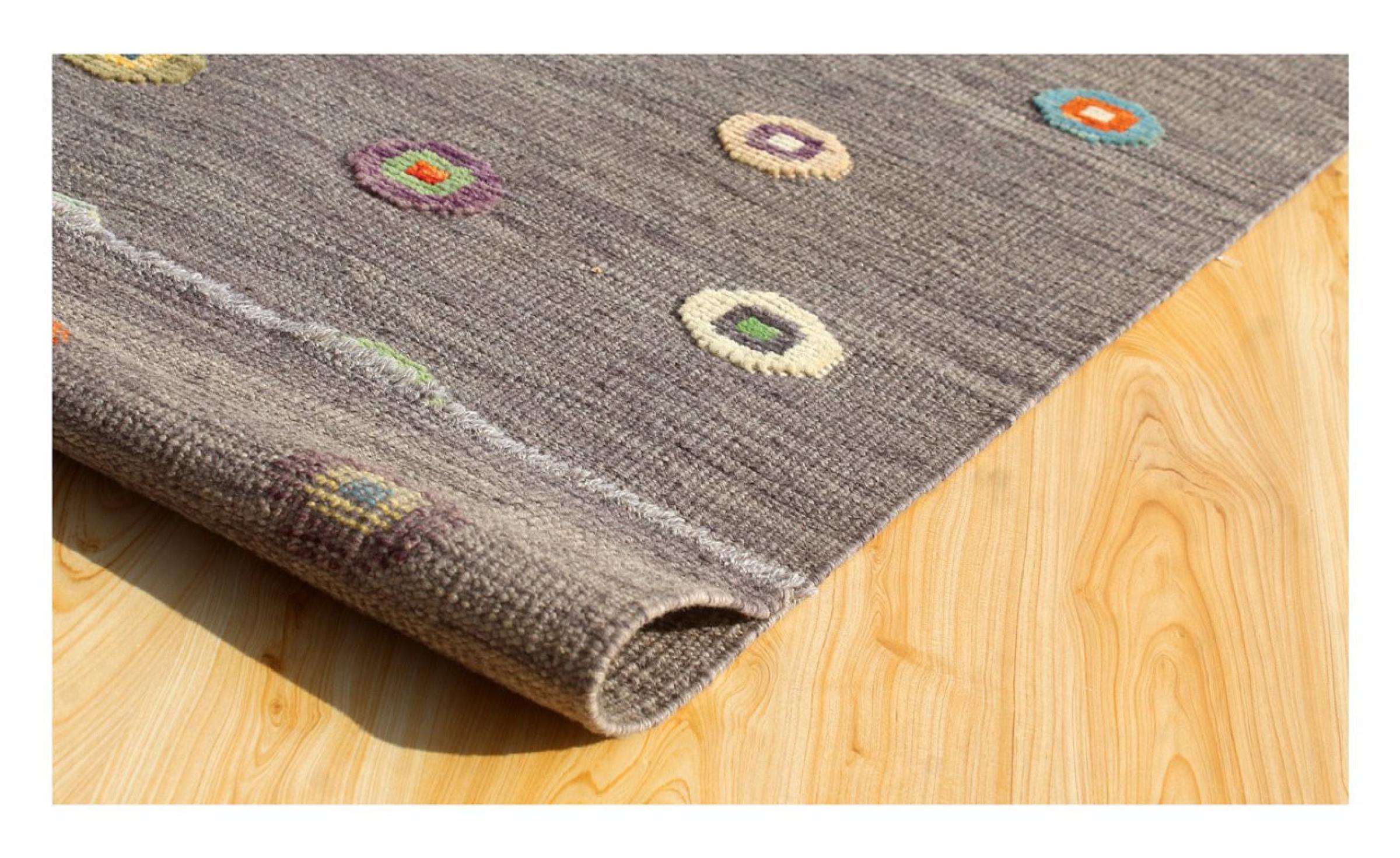 Esta alfombra fue hecha a mano en un telar como un tejido plano. Tejido plano es el término utilizado para describir las alfombras que no tienen pelo. Como el nombre promete, estas alfombras están tejidas y no anudadas. Esto resulta en una alfombra plana con una superficie estructurada. Los tejidos planos no son tan suaves y normalmente más delgados que las alfombras anudadas. Al mismo tiempo, su fabricación es mucho menos compleja y por lo general se pueden disponer por ambos lados (frontal y posterior). Sus patrones suelen ser geométricos, lo cual está determinado por el tejido.