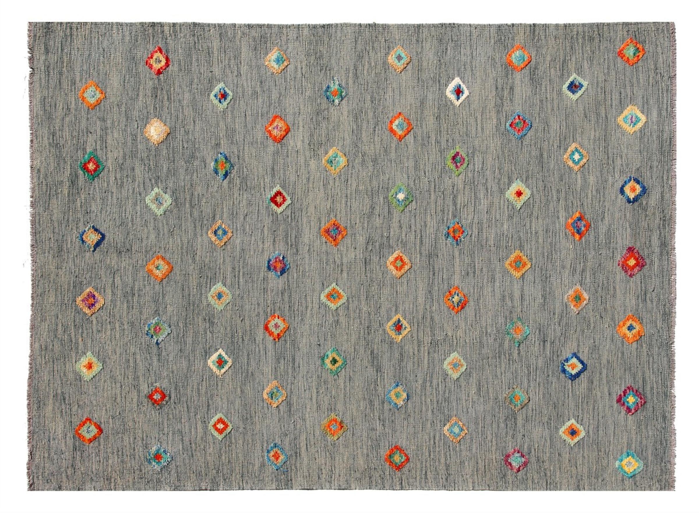 Alfombra número: 315544002176017 Tamaño: 241x167 cm Espesor: alrededor de 5 mm Elaboración: Tejido a mano Crespón: Lana hilada a mano Urdimbre: Lana de oveja Origen: Afganistán Edad: Nuevo Peso: alrededor de 8 kg También conocido como Kilim, Qilim, Chilim, Afgan, Afghán Cantidad en stock: Única - Solo 1 en stock