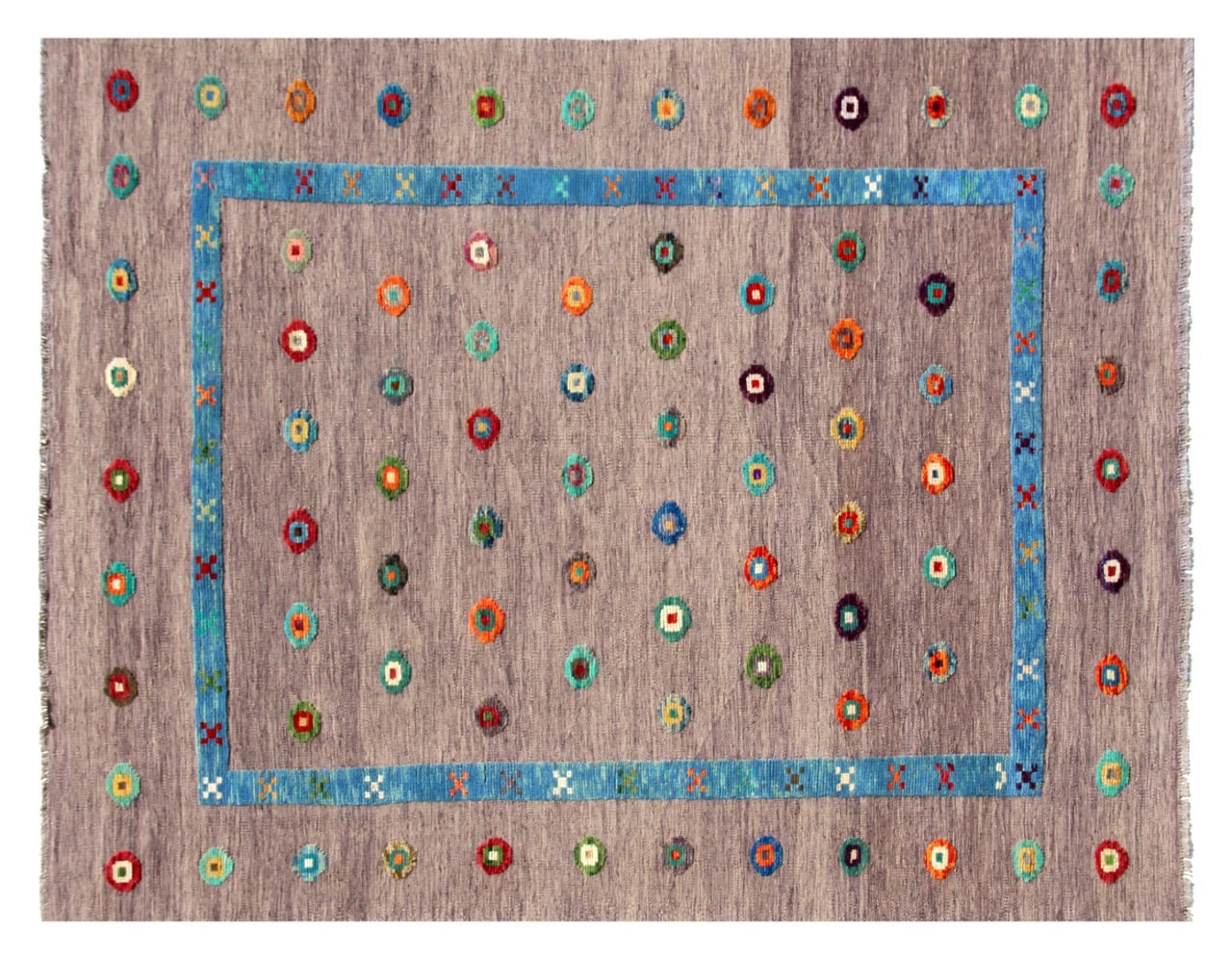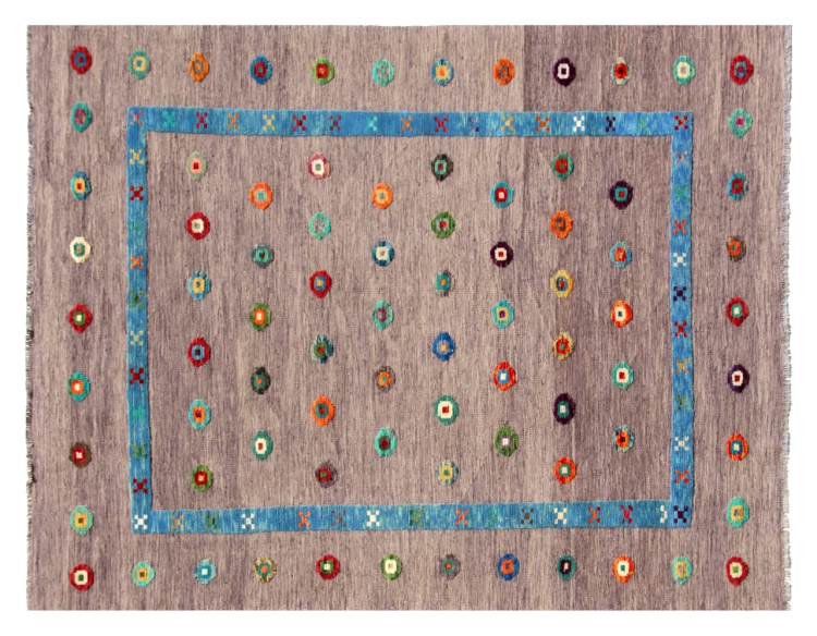 Esta alfombra fue hecha a mano en un telar como un tejido plano. Tejido plano es el término utilizado para describir las alfombras que no tienen pelo. Como el nombre promete, estas alfombras están tejidas y no anudadas. Esto resulta en una alfombra plana con una superficie estructurada. Los tejidos planos no son tan suaves y normalmente más delgados que las alfombras anudadas. Al mismo tiempo, su fabricación es mucho menos compleja y por lo general se pueden disponer por ambos lados (frontal y posterior). Sus patrones suelen ser geométricos, lo cual está determinado por el tejido.