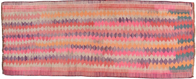 Estas alfombras kilim muestran una diferencia decisiva con las alfombras anudadas a mano - son tejidas a mano. Por lo tanto, no tienen un montón alto de lana y son a menudo más planos y más ásperos que las alfombras de lana anudada. Su fabricación es menos elaborada y por eso suelen ser mucho más baratas. Como ventaja, las alfombras de kilim son también mucho más ligeras y pueden ser colocadas por delante y por detrás. Los kilims tejidos a mano provienen originalmente de la antigua Persia y ahora también se fabrican a menudo en el Afganistán. Tienen patrones bastante simples y directos, que se deben a su técnica de tejido.