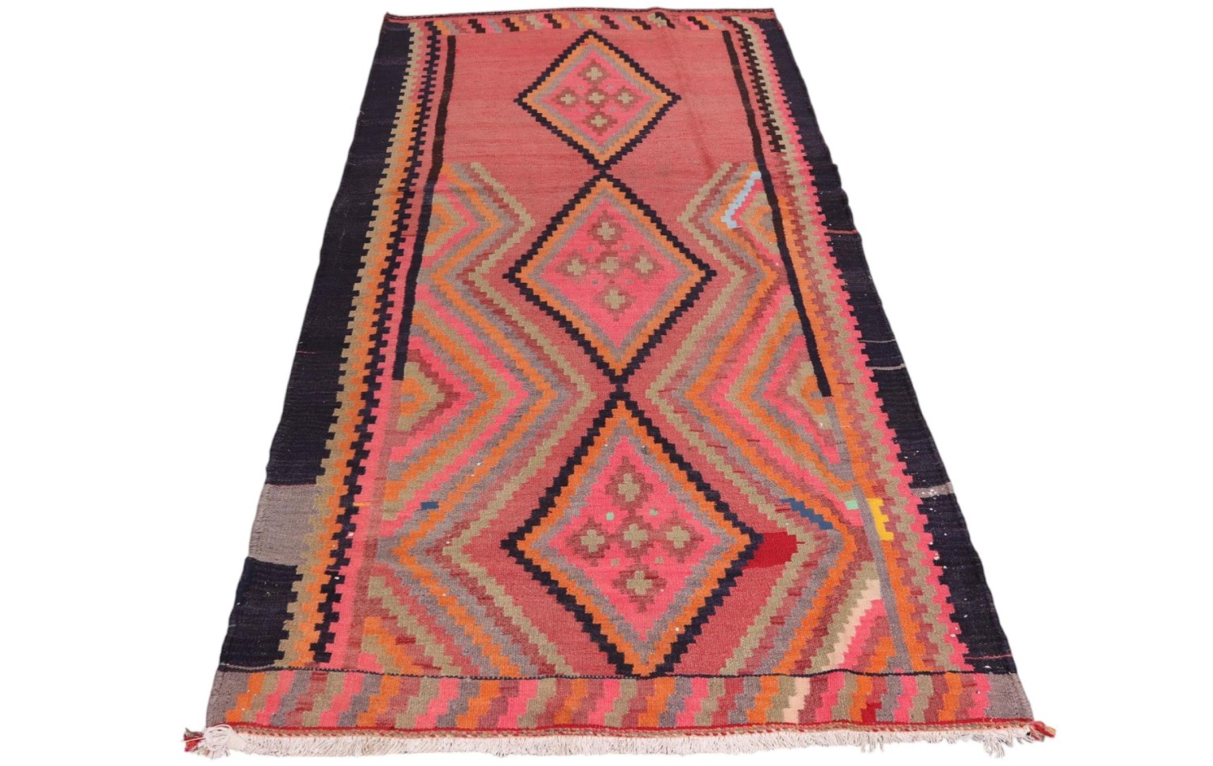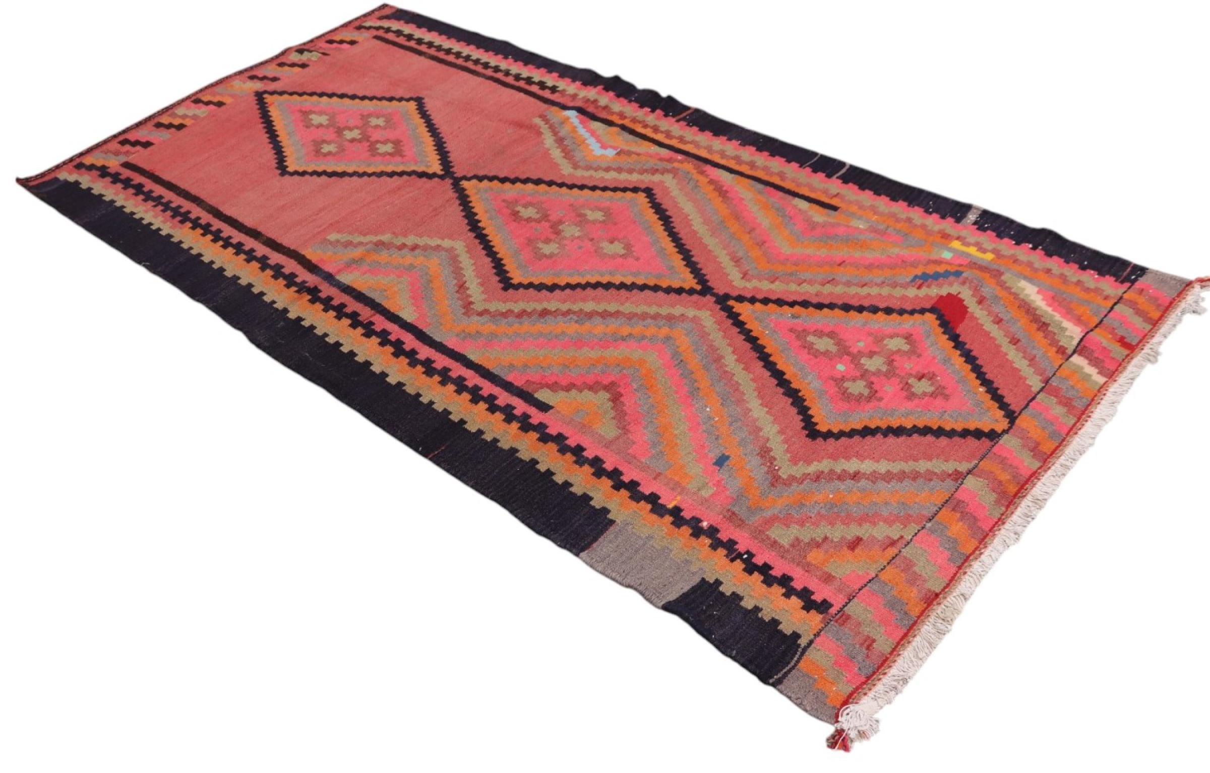 Estas alfombras kilim muestran una diferencia decisiva con las alfombras anudadas a mano - son tejidas a mano. Por lo tanto, no tienen un montón alto de lana y son a menudo más planos y más ásperos que las alfombras de lana anudada. Su fabricación es menos elaborada y por eso suelen ser mucho más baratas. Como ventaja, las alfombras de kilim son también mucho más ligeras y pueden ser colocadas por delante y por detrás. Los kilims tejidos a mano provienen originalmente de la antigua Persia y ahora también se fabrican a menudo en el Afganistán. Tienen patrones bastante simples y directos, que se deben a su técnica de tejido.