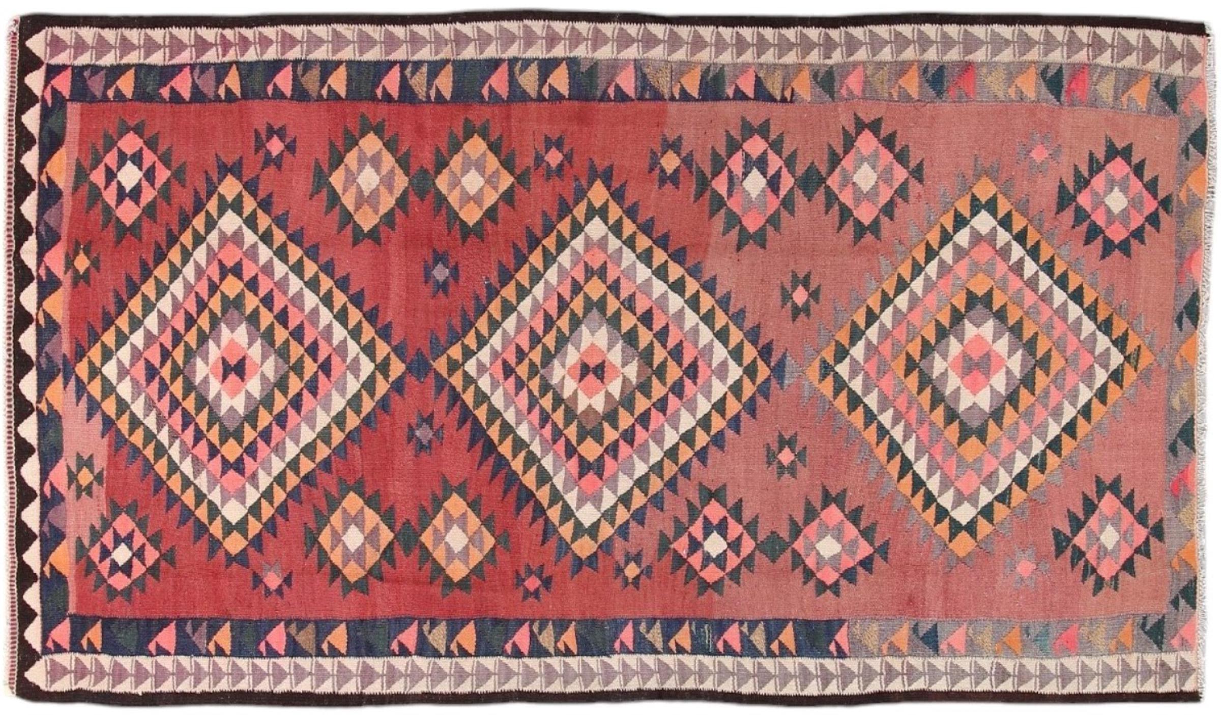 Estas alfombras kilim muestran una diferencia decisiva con las alfombras anudadas a mano - son tejidas a mano. Por lo tanto, no tienen un montón alto de lana y son a menudo más planos y más ásperos que las alfombras de lana anudada. Su fabricación es menos elaborada y por eso suelen ser mucho más baratas. Como ventaja, las alfombras de kilim son también mucho más ligeras y pueden ser colocadas por delante y por detrás. Los kilims tejidos a mano provienen originalmente de la antigua Persia y ahora también se fabrican a menudo en el Afganistán. Tienen patrones bastante simples y directos, que se deben a su técnica de tejido.