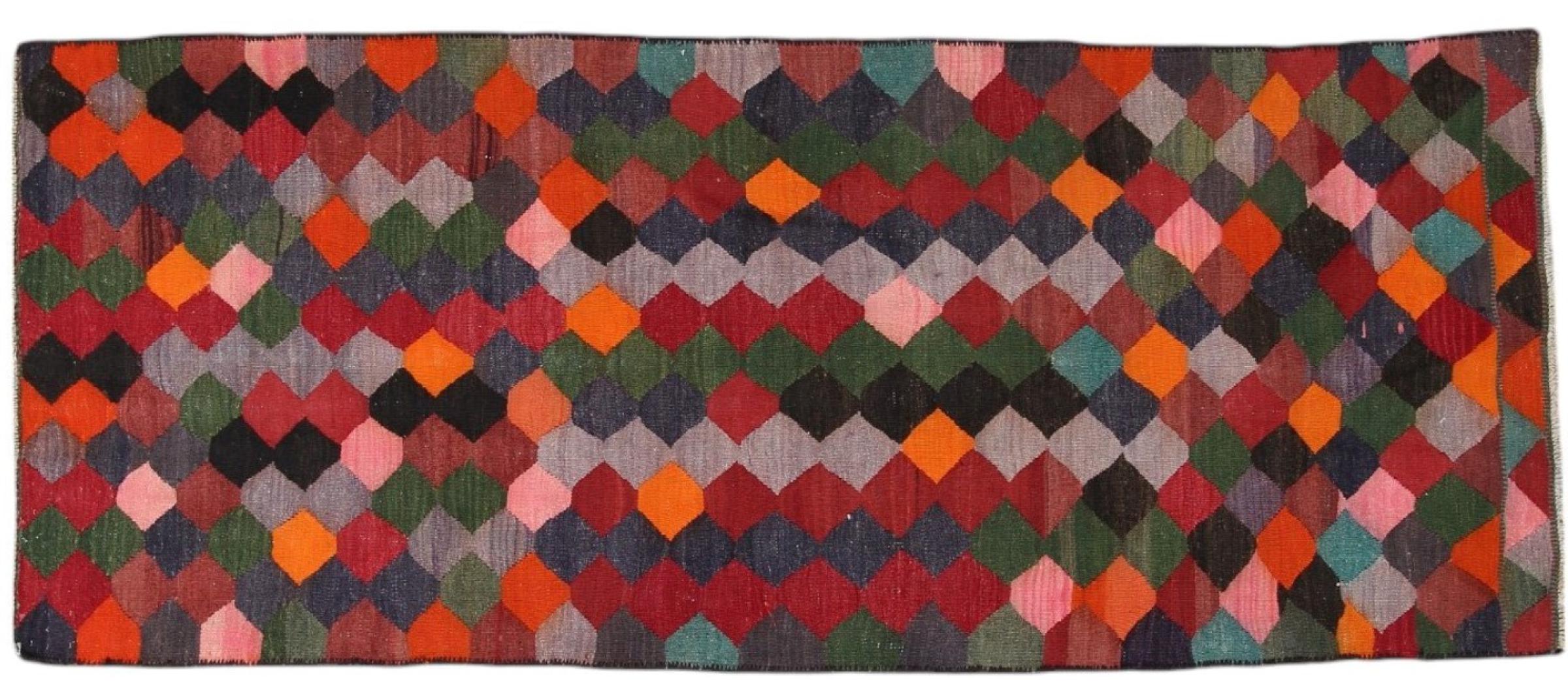 Estas alfombras kilim muestran una diferencia decisiva con las alfombras anudadas a mano - son tejidas a mano. Por lo tanto, no tienen un montón alto de lana y son a menudo más planos y más ásperos que las alfombras de lana anudada. Su fabricación es menos elaborada y por eso suelen ser mucho más baratas. Como ventaja, las alfombras de kilim son también mucho más ligeras y pueden ser colocadas por delante y por detrás. Los kilims tejidos a mano provienen originalmente de la antigua Persia y ahora también se fabrican a menudo en el Afganistán. Tienen patrones bastante simples y directos, que se deben a su técnica de tejido.