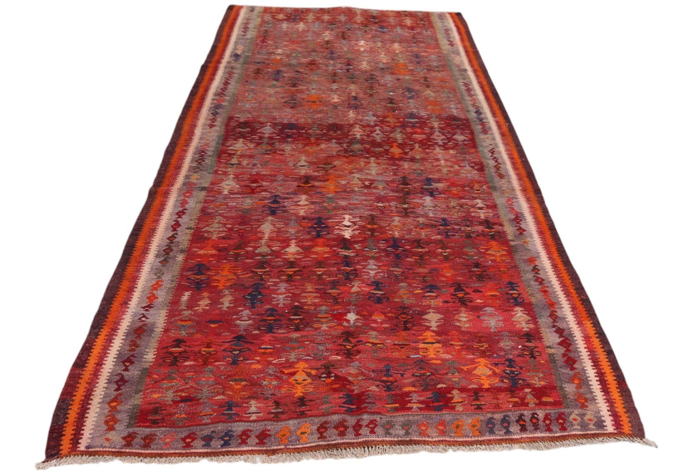 Estas alfombras kilim muestran una diferencia decisiva con las alfombras anudadas a mano - son tejidas a mano. Por lo tanto, no tienen un montón alto de lana y son a menudo más planos y más ásperos que las alfombras de lana anudada. Su fabricación es menos elaborada y por eso suelen ser mucho más baratas. Como ventaja, las alfombras de kilim son también mucho más ligeras y pueden ser colocadas por delante y por detrás. Los kilims tejidos a mano provienen originalmente de la antigua Persia y ahora también se fabrican a menudo en el Afganistán. Tienen patrones bastante simples y directos, que se deben a su técnica de tejido.