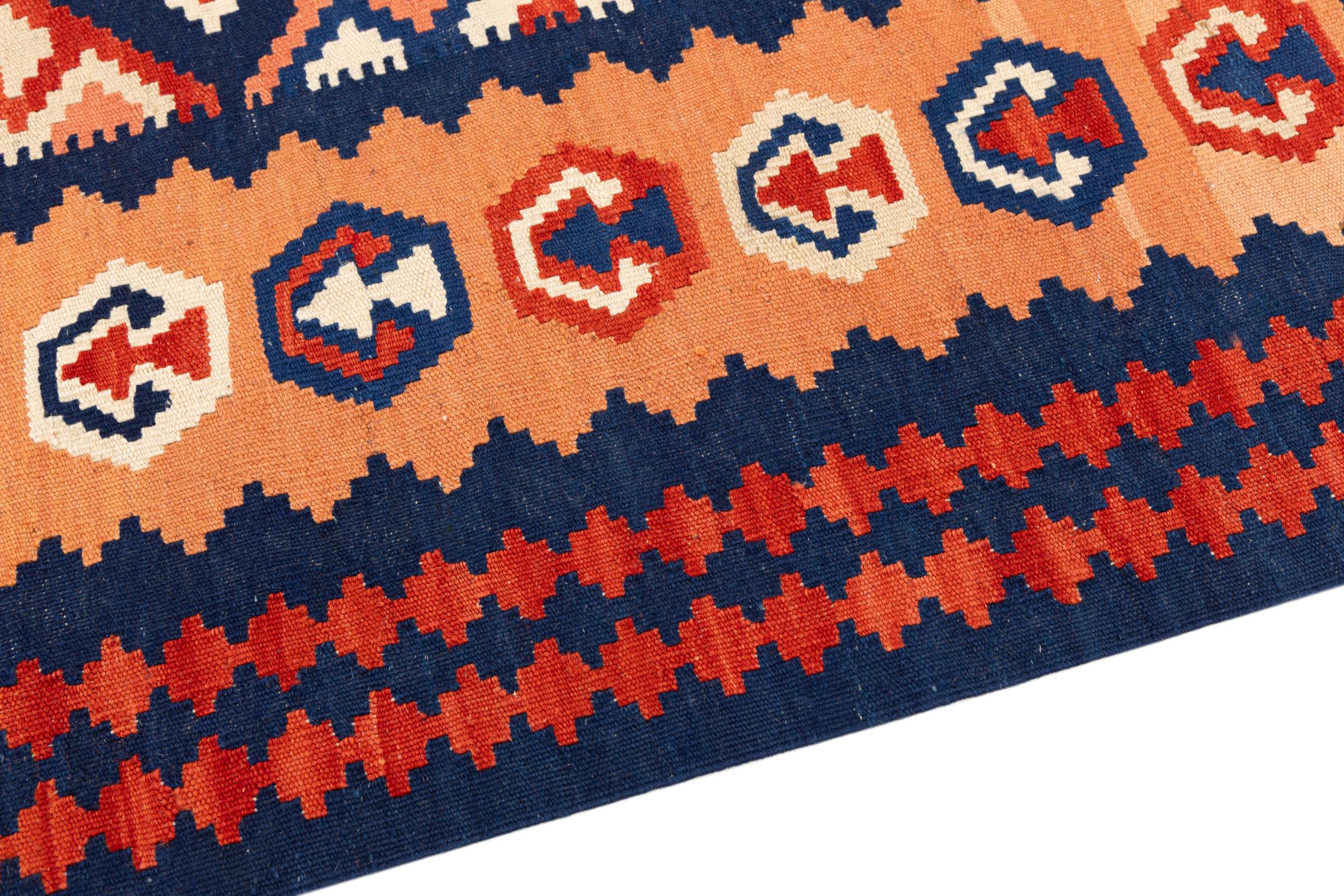 Este kilim Fars tejido a mano combina motivos y ornamentos persas con la tradición de los tejidos planos. Una gran y moderna combinación de los conceptos más populares de Oriente. Esto también da como resultado una alfombra con una gran variedad de usos. Ya sea como colcha o delante del sofá como alfombra, una Kelim Fars lo hace posible y ahora se puede encontrar en las revistas de diseño de interiores más populares. Las alfombras kilim fars se tejen a mano en Irán, por lo que se encuentran entre los kilims de mayor calidad.