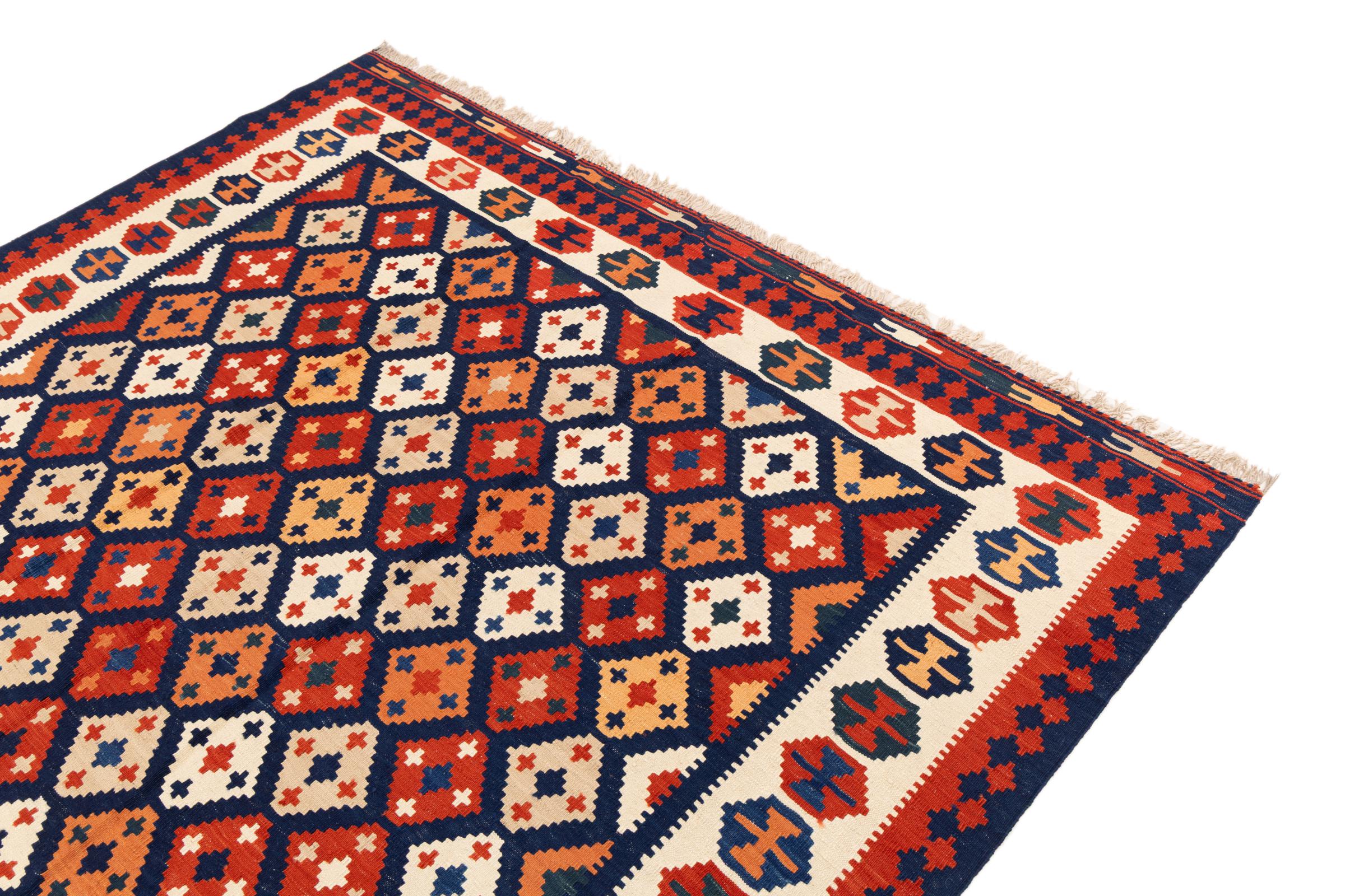 Este kilim Fars tejido a mano combina motivos y ornamentos persas con la tradición de los tejidos planos. Una gran y moderna combinación de los conceptos más populares de Oriente. Esto también da como resultado una alfombra con una gran variedad de usos. Ya sea como colcha o delante del sofá como alfombra, una Kelim Fars lo hace posible y ahora se puede encontrar en las revistas de diseño de interiores más populares. Las alfombras kilim fars se tejen a mano en Irán, por lo que se encuentran entre los kilims de mayor calidad.