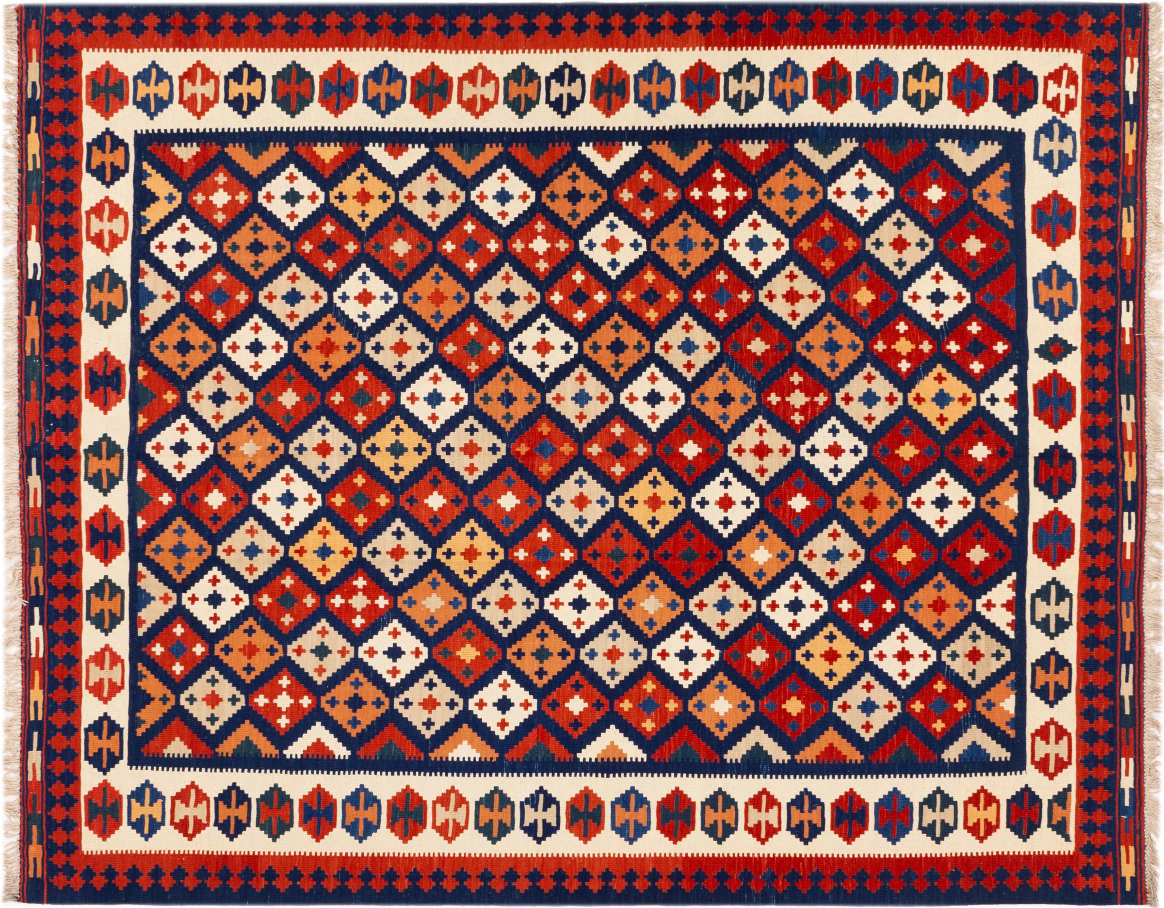 Estas alfombras kilim muestran una diferencia decisiva con las alfombras anudadas a mano - son tejidas a mano. Por lo tanto, no tienen un montón alto de lana y son a menudo más planos y más ásperos que las alfombras de lana anudada. Su fabricación es menos elaborada y por eso suelen ser mucho más baratas. Como ventaja, las alfombras de kilim son también mucho más ligeras y pueden ser colocadas por delante y por detrás. Los kilims tejidos a mano provienen originalmente de la antigua Persia y ahora también se fabrican a menudo en el Afganistán. Tienen patrones bastante simples y directos, que se deben a su técnica de tejido.