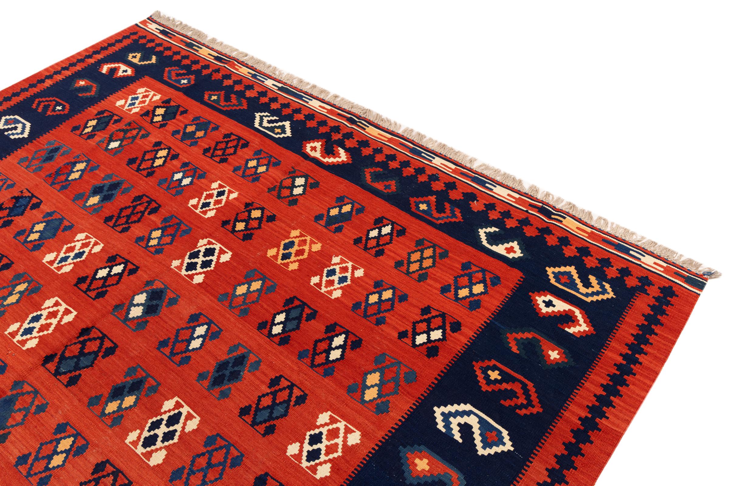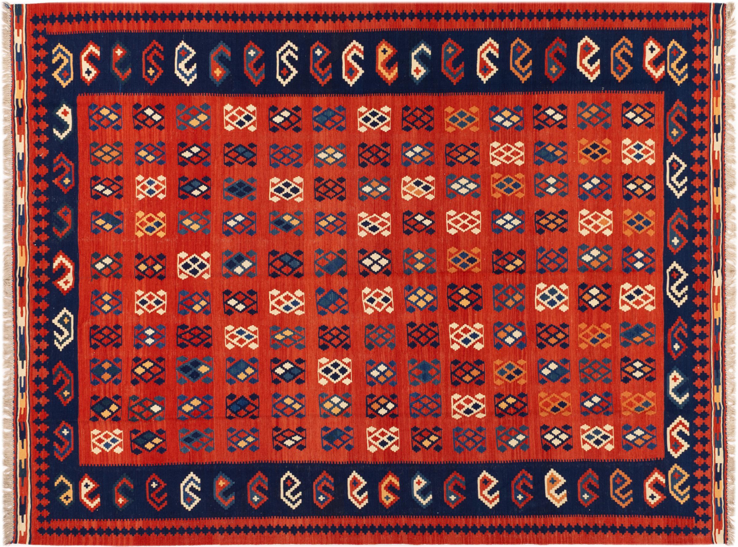 Este kilim Fars tejido a mano combina motivos y ornamentos persas con la tradición de los tejidos planos. Una gran y moderna combinación de los conceptos más populares de Oriente. Esto también da como resultado una alfombra con una gran variedad de usos. Ya sea como colcha o delante del sofá como alfombra, una Kelim Fars lo hace posible y ahora se puede encontrar en las revistas de diseño de interiores más populares. Las alfombras kilim fars se tejen a mano en Irán, por lo que se encuentran entre los kilims de mayor calidad.
