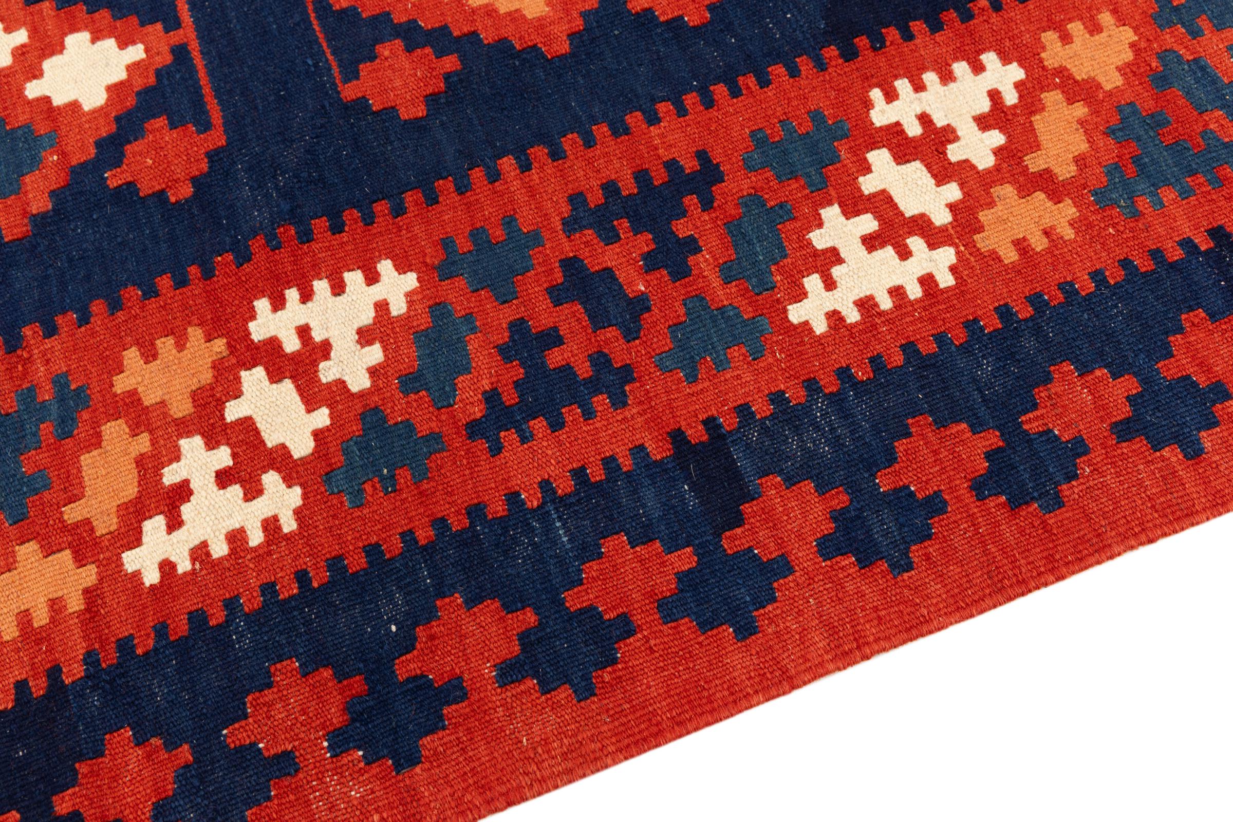 Este kilim Fars tejido a mano combina motivos y ornamentos persas con la tradición de los tejidos planos. Una gran y moderna combinación de los conceptos más populares de Oriente. Esto también da como resultado una alfombra con una gran variedad de usos. Ya sea como colcha o delante del sofá como alfombra, una Kelim Fars lo hace posible y ahora se puede encontrar en las revistas de diseño de interiores más populares. Las alfombras kilim fars se tejen a mano en Irán, por lo que se encuentran entre los kilims de mayor calidad.